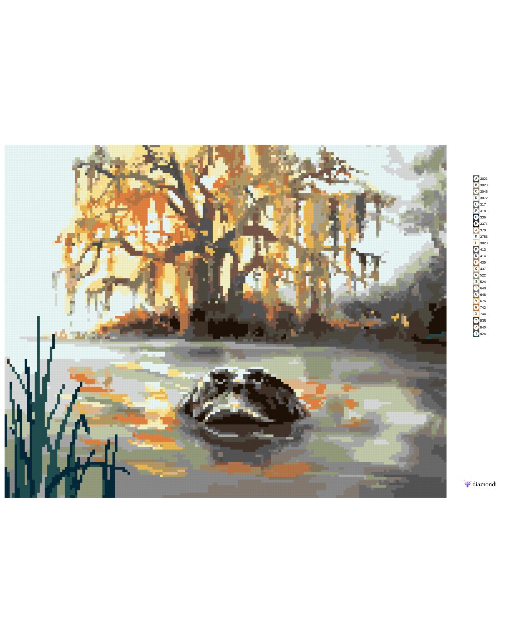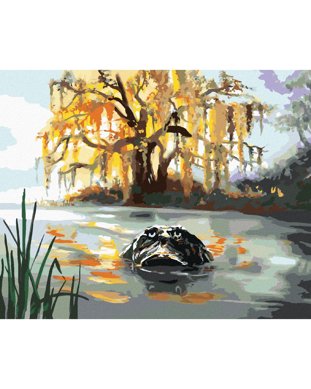 Diamantové maľovanie - ALIGÁTOR HĽADIACI Z VODY A STROMY (D. RUSTY RUST)