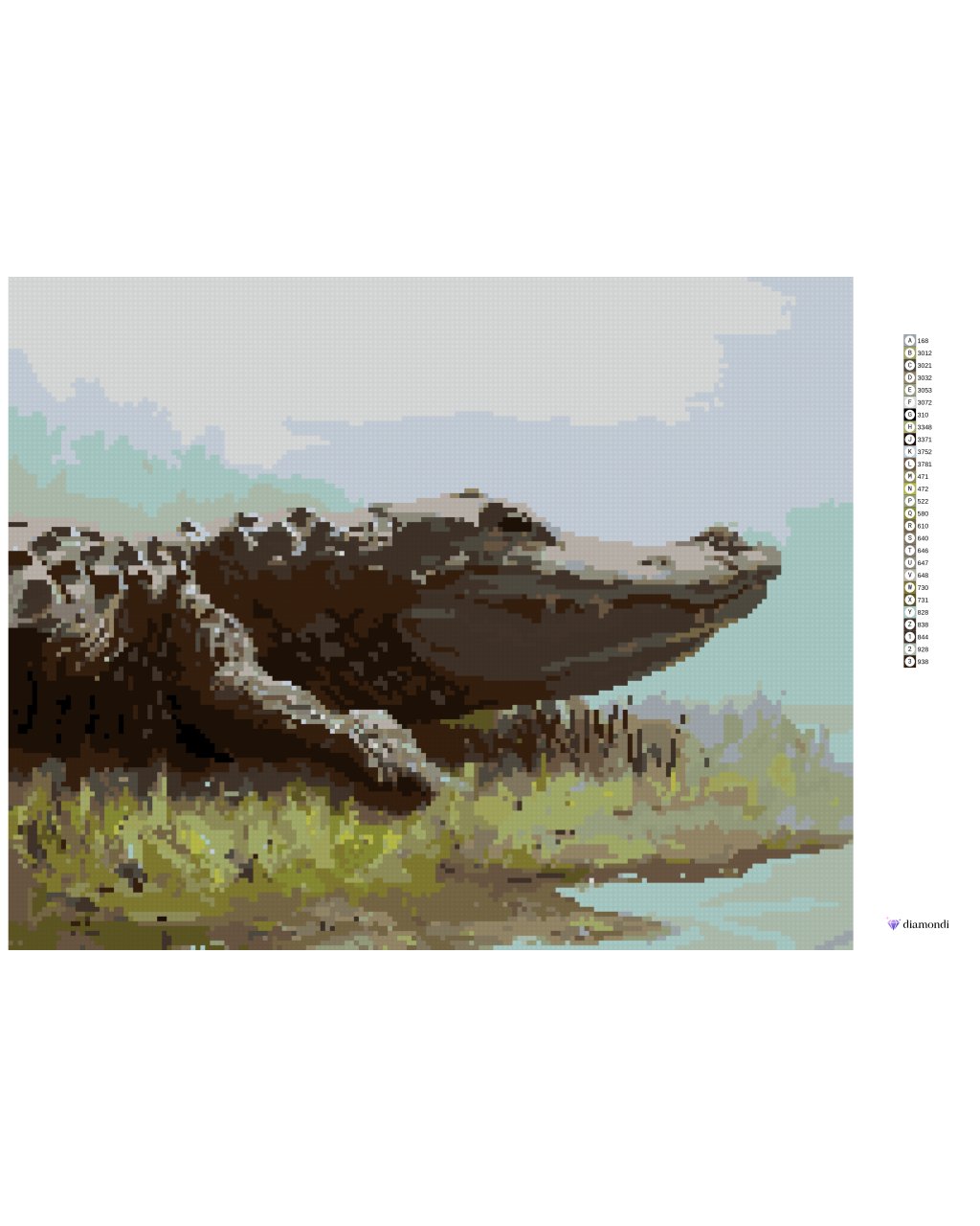 Diamantové maľovanie - ALIGÁTOR LEŽIACI V TRÁVE PRI VODE (D. RUSTY RUST)