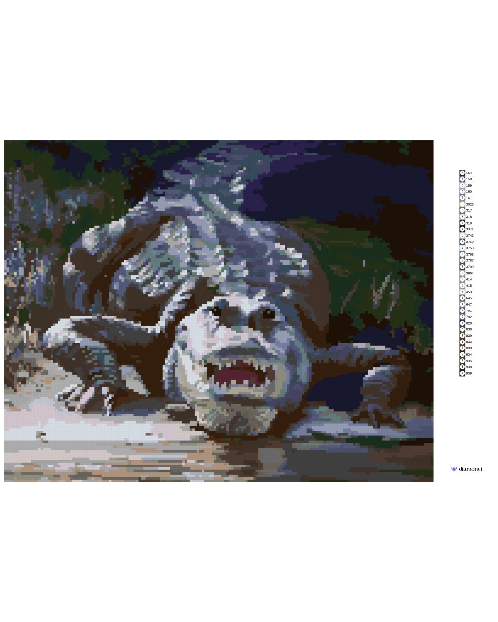 Diamantové maľovanie - ALIGÁTOR S OTVORENOU TLAMOU PRI VODE (D. RUSTY RUST)