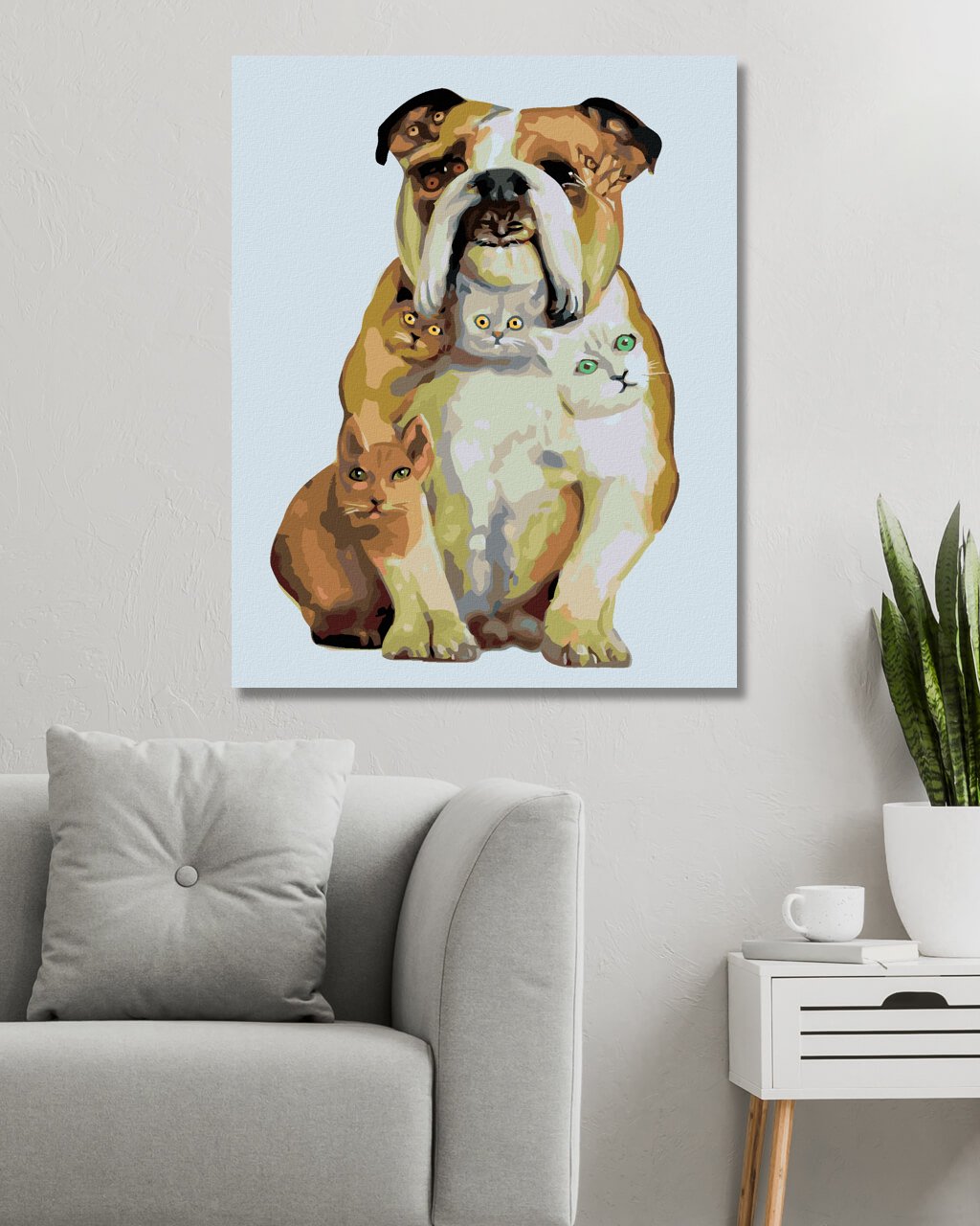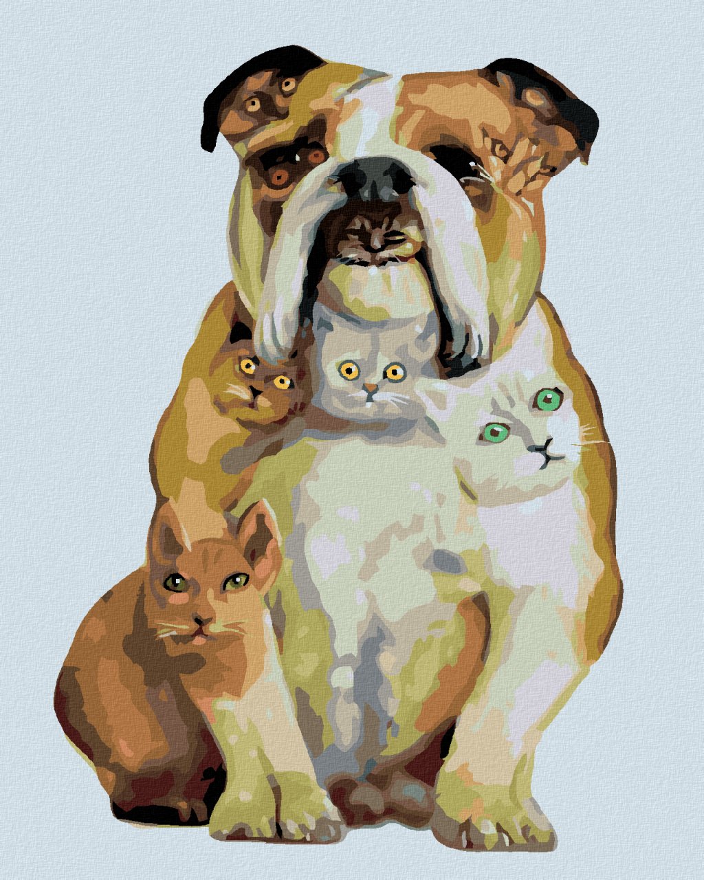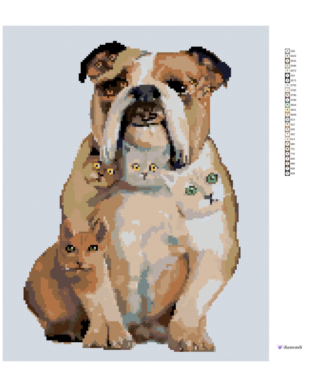 Diamantové maľovanie - ANGLICKÝ BULDOK A MAČKY (D. RUSTY RUST)