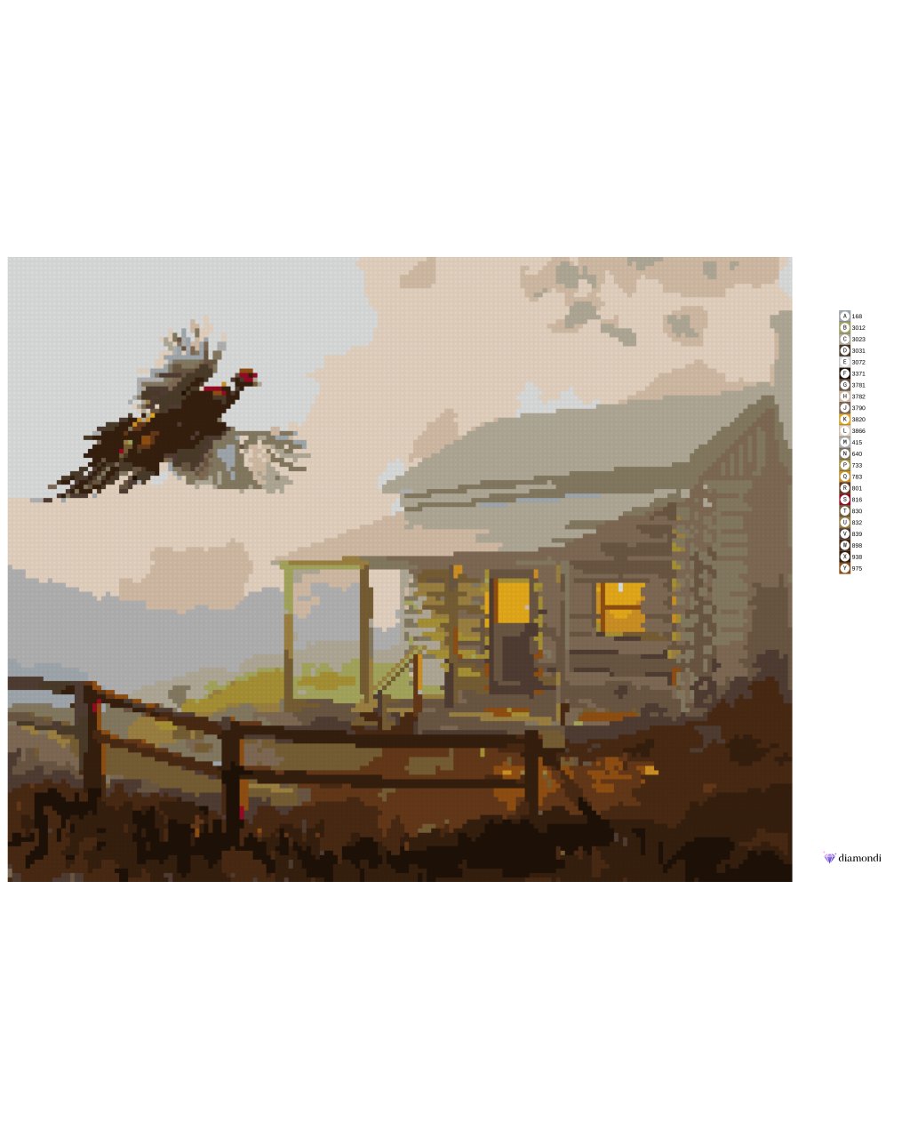 Diamantové maľovanie - BAŽANT A CHATA V HMLE (D. RUSTY RUST)