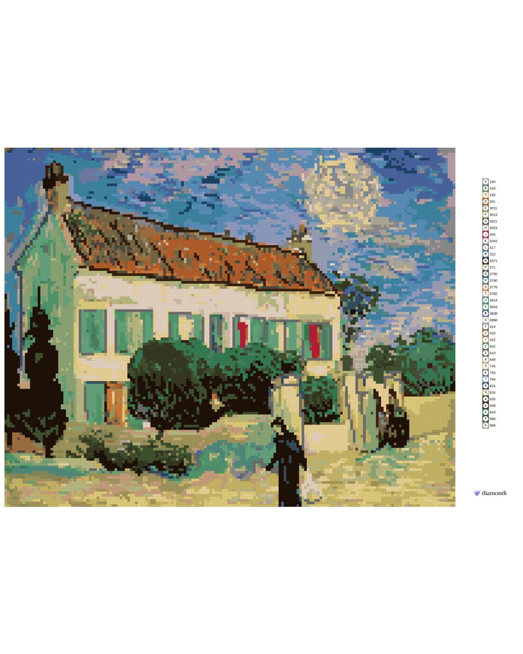 Diamantové maľovanie - BIELY DOM V NOCI (VINCENT VAN GOGH)