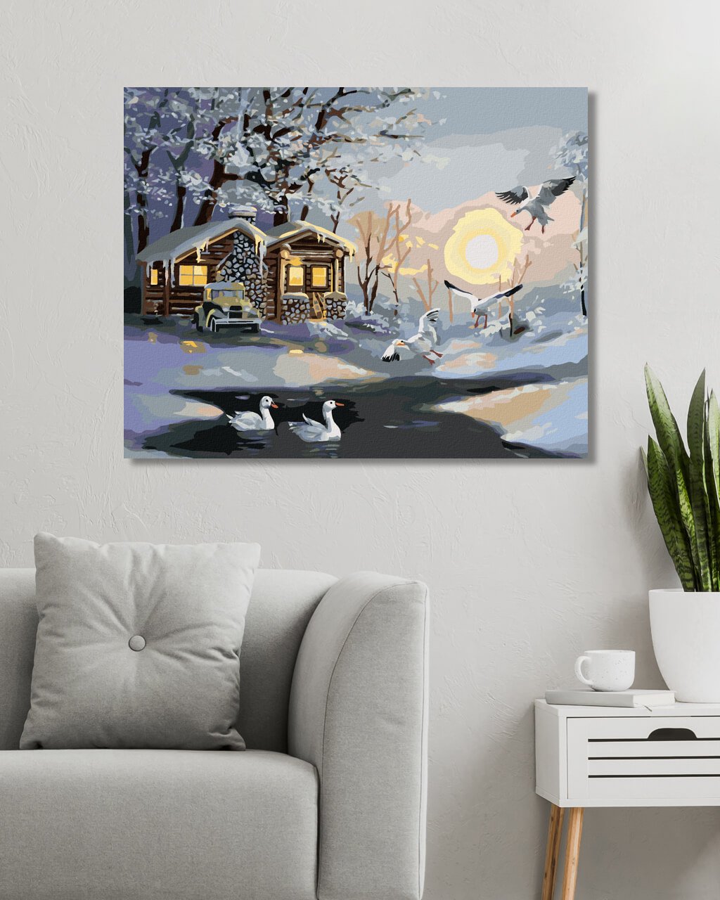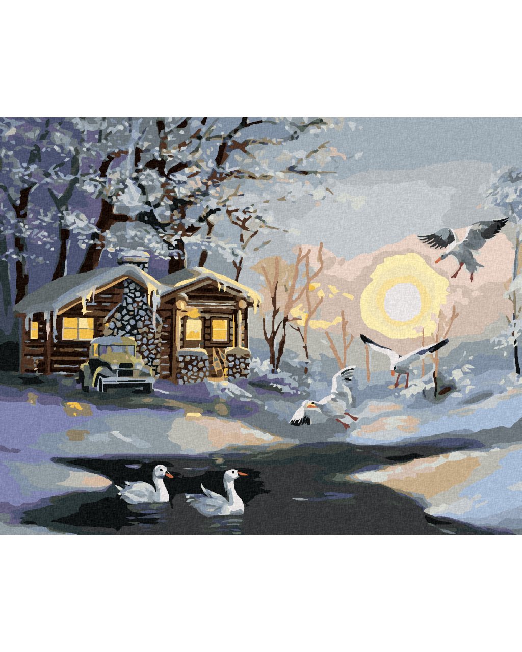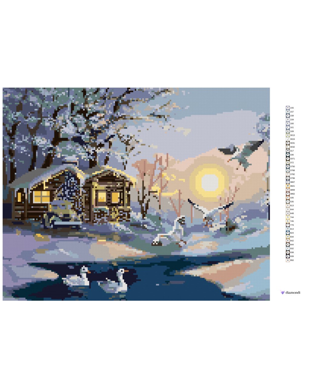 Diamantové maľovanie - ČAJKY PRI ZASNEŽENOM DOME (D. RUSTY RUST)