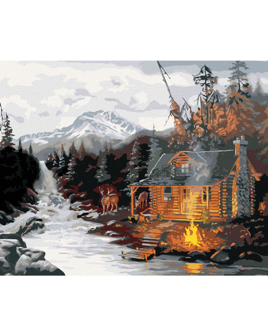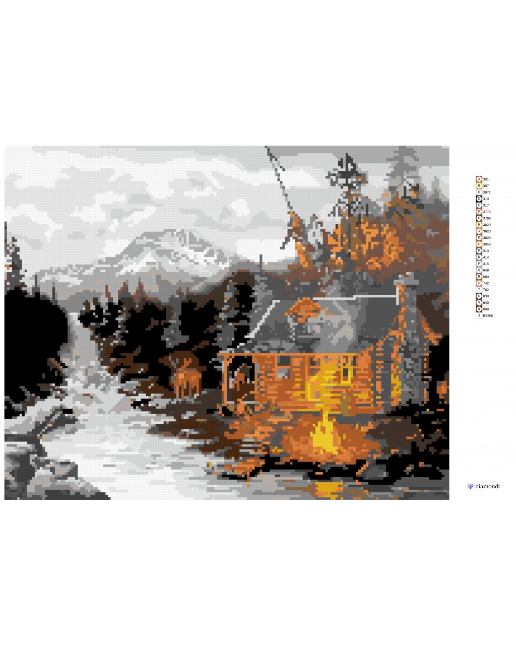 Diamantové maľovanie - CHATA, JELEŇ, RIEKA A HORY (D. RUSTY RUST)
