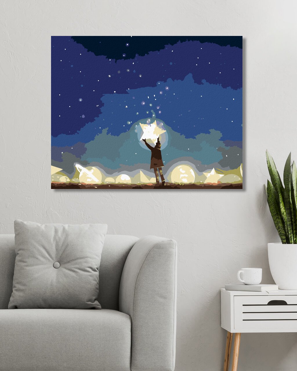 Diamantové maľovanie - CHLAPEC MEDZI ŽIARIACIMI PLANÉTAMI