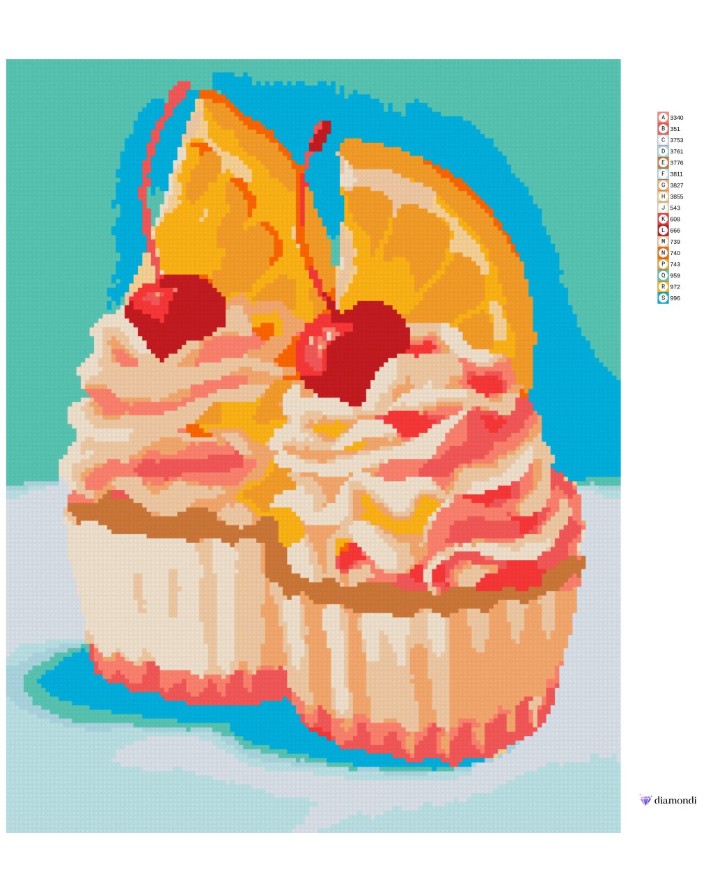 Diamantové maľovanie - CUPCAKE S POMARANČOM A ČEREŠNE (MYROSLAVA VOLOSCHUK)