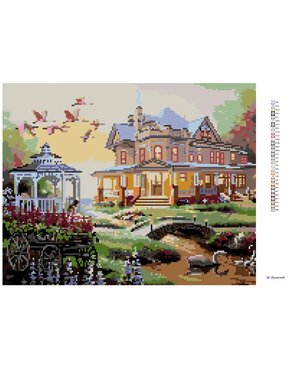 Diamantové maľovanie - DOM S ALTÁNOM A ZÁPAD SLNKA (D. RUSTY RUST)