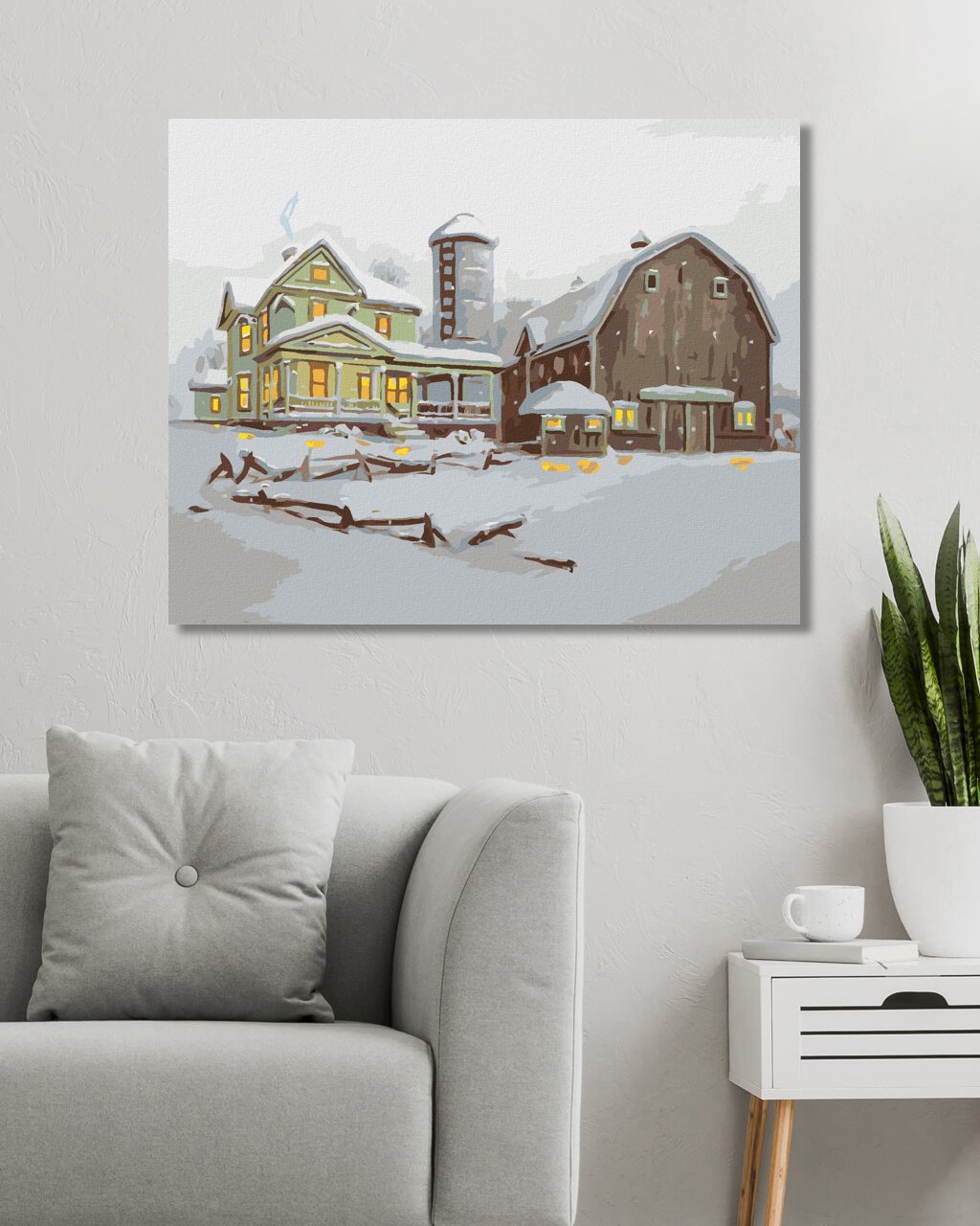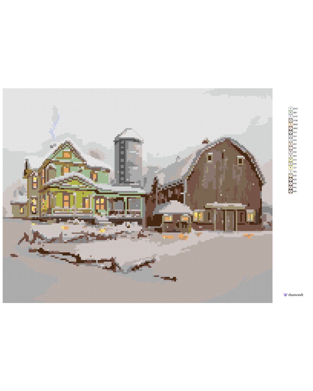 Diamantové maľovanie - DOM SO STODOLOU V ZIME (D. RUSTY RUST)