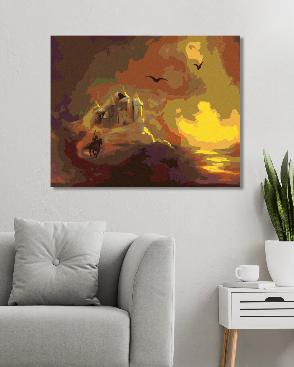 Diamantové maľovanie - HRAD, RYTIER A ZÁPAD SLNKA (D. RUSTY RUST)