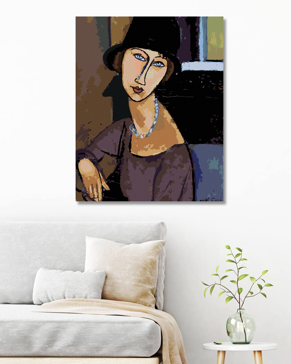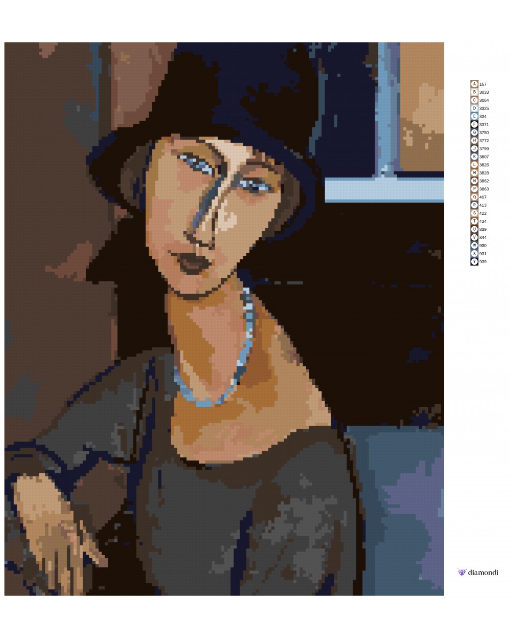 Diamantové maľovanie - JEANNE HÉBUTERNE S KLOBÚKOM A NÁHRDELNÍKOM (AMEDEO MODIGLIANI)