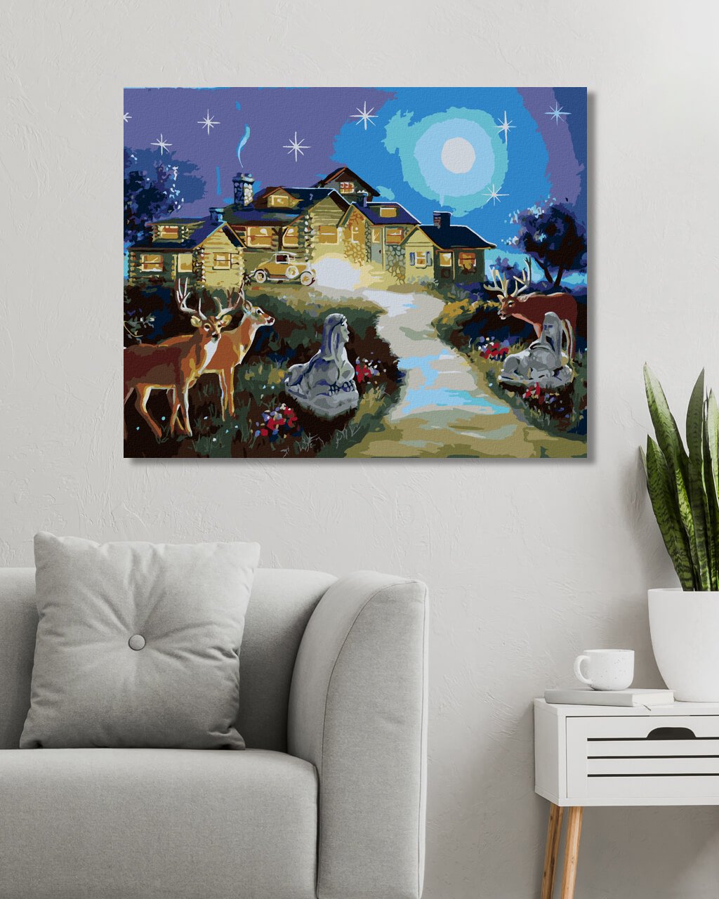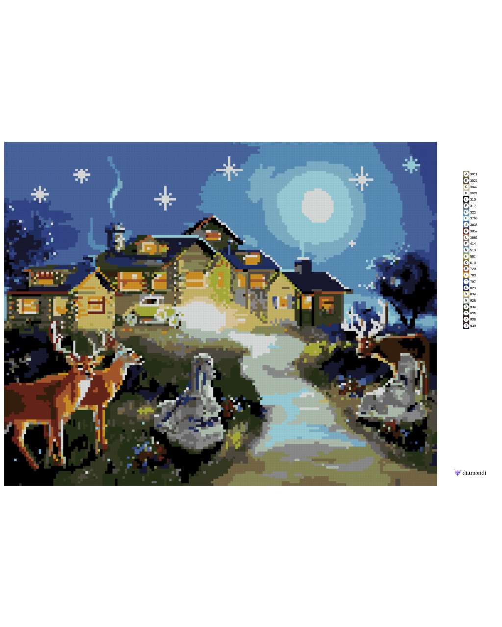 Diamantové maľovanie - JELEŇ A LAŇ PRI DOME (D. RUSTY RUST)