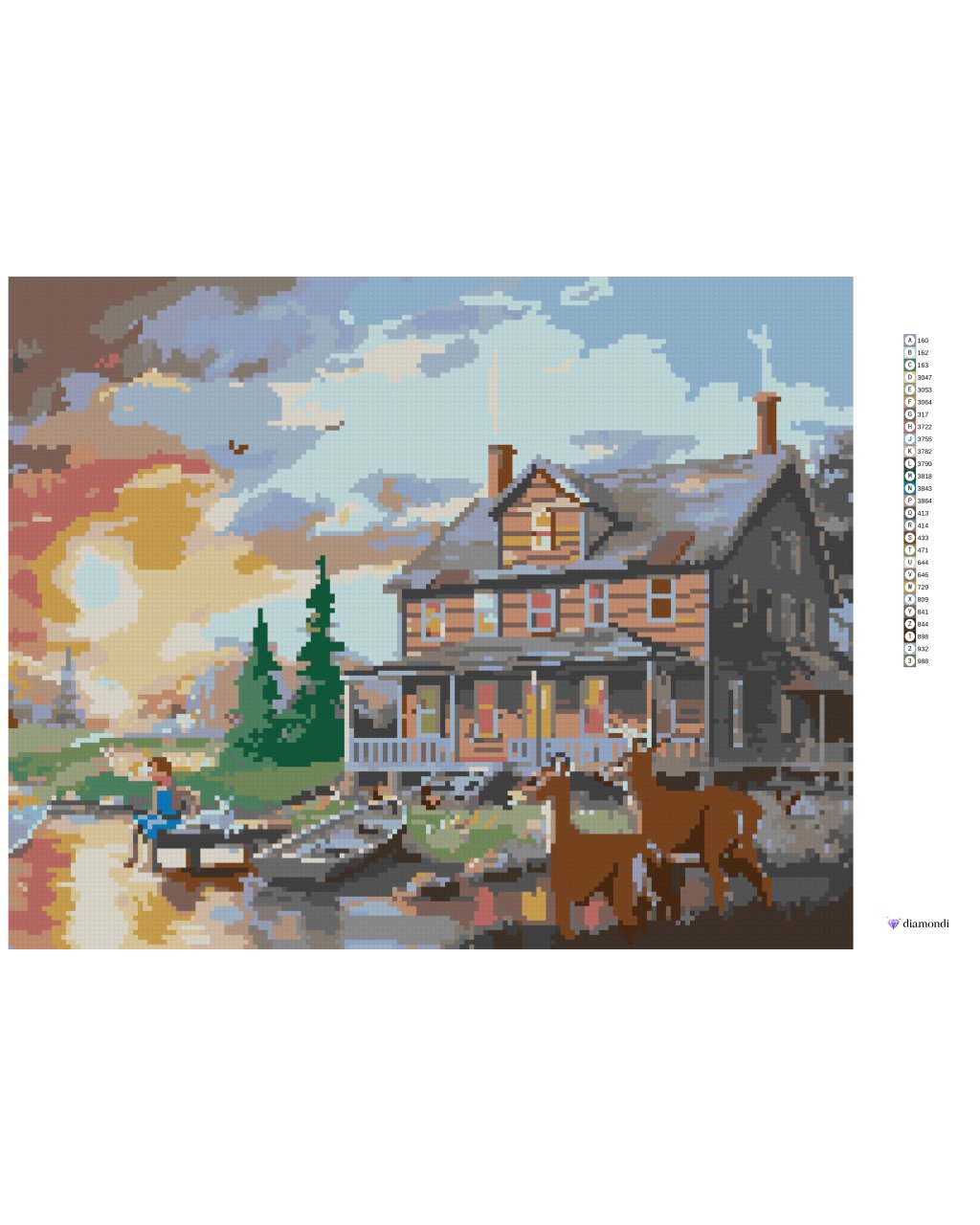 Diamantové maľovanie - JELEŇ A LAŇ PRI JAZIERKU PRED DOMOM (D. RUSTY RUST)