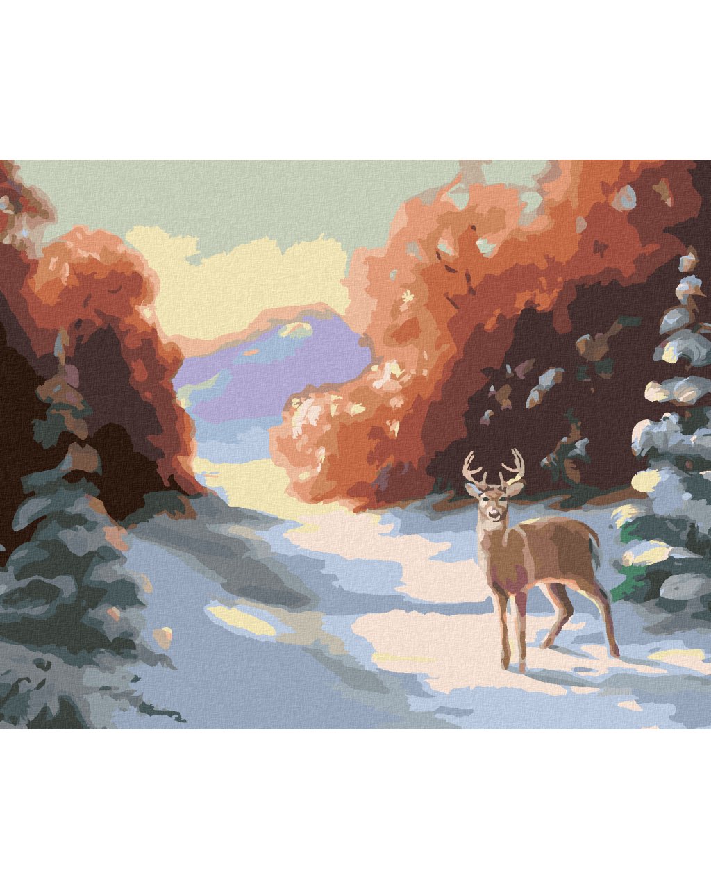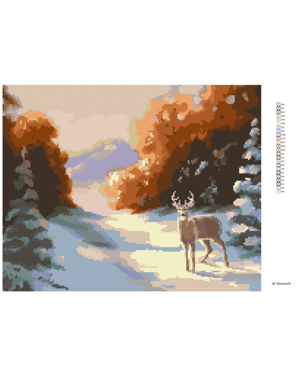 Diamantové maľovanie - JELEŇ A ZASNEŽENÉ SMREKY V LESE (D. RUSTY RUST)
