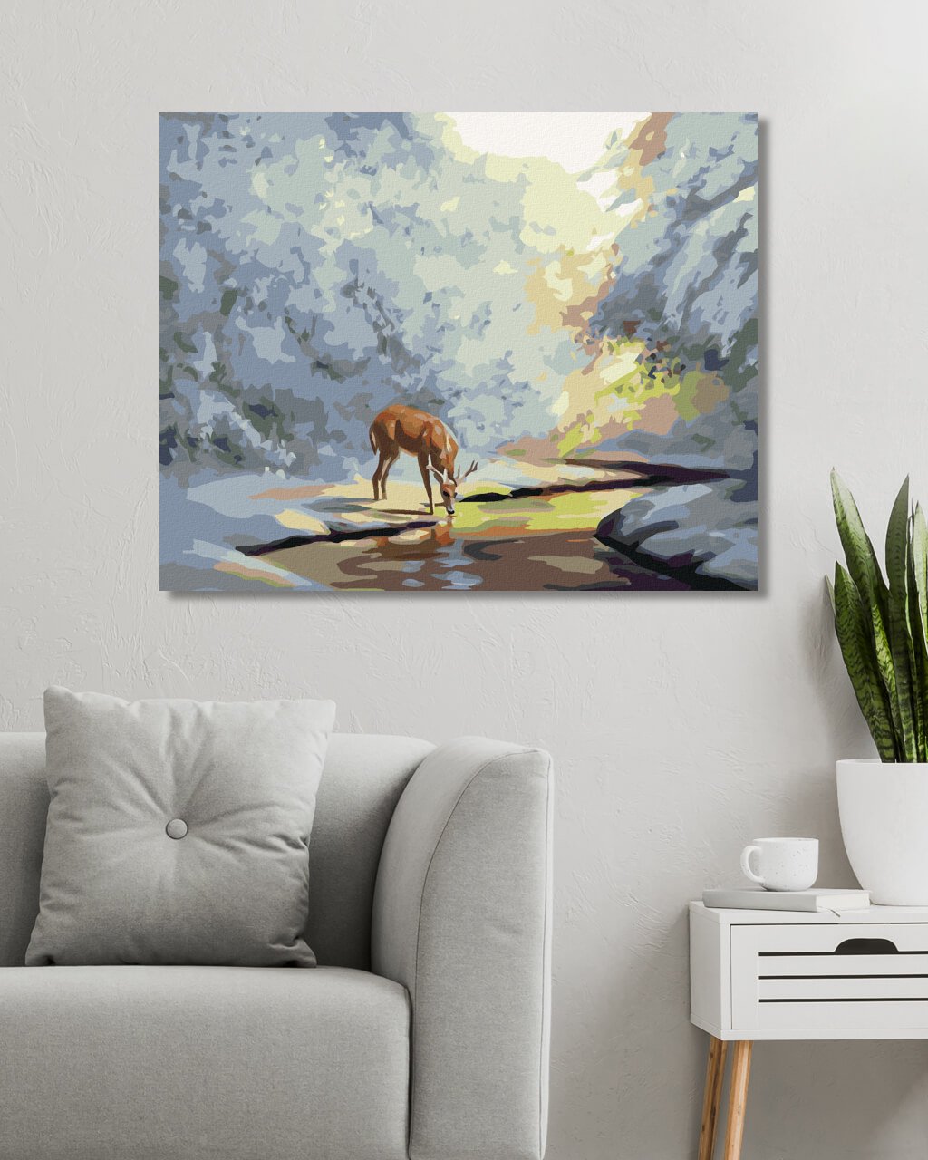 Diamantové maľovanie - JELEŇ PIJE ZO ZAMRZLENÉHO POTOKA (D. RUSTY RUST)