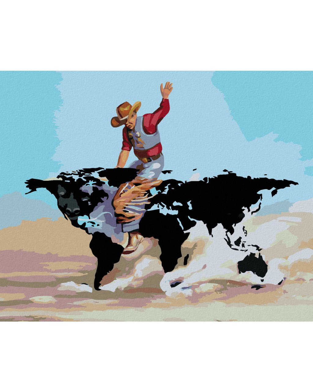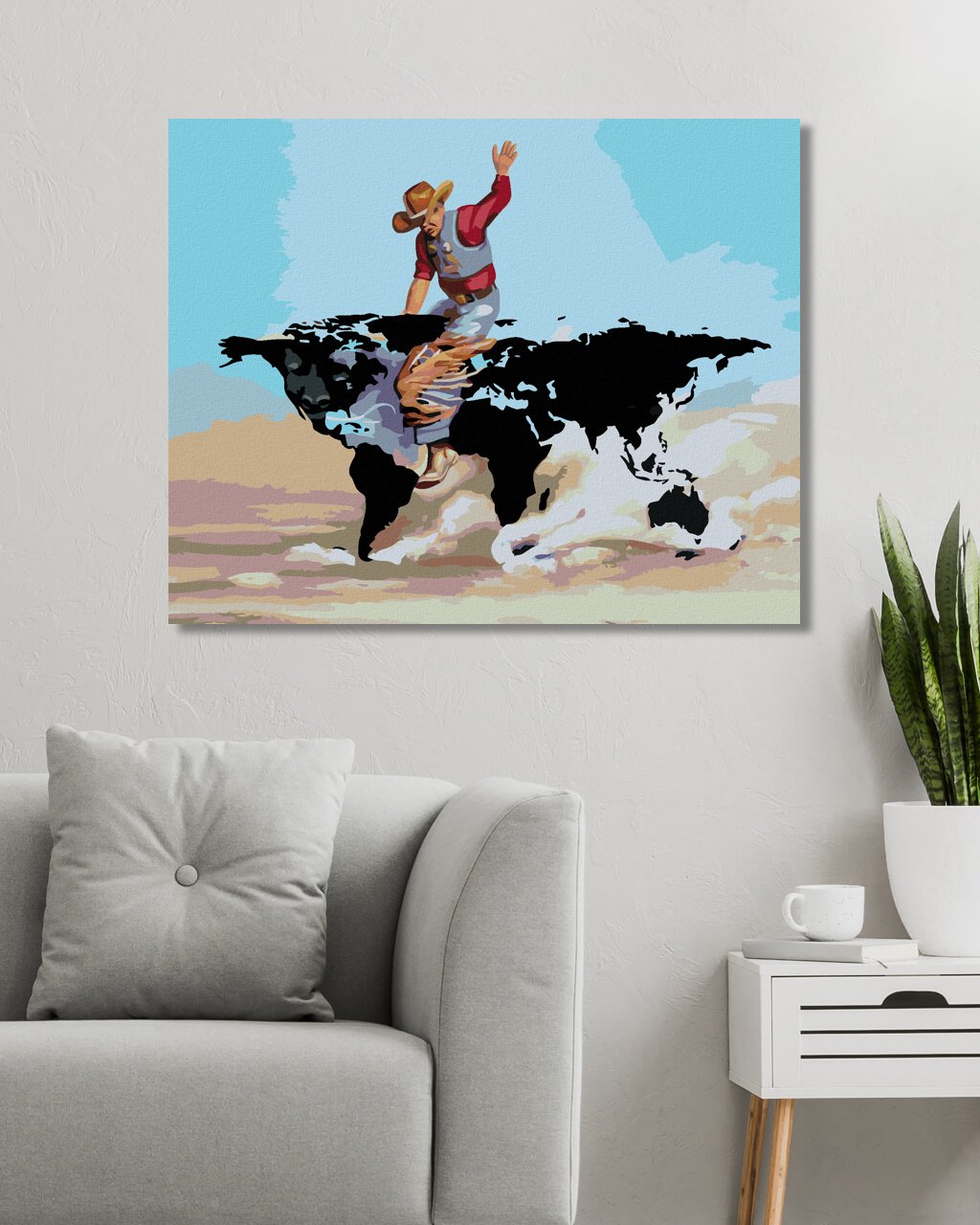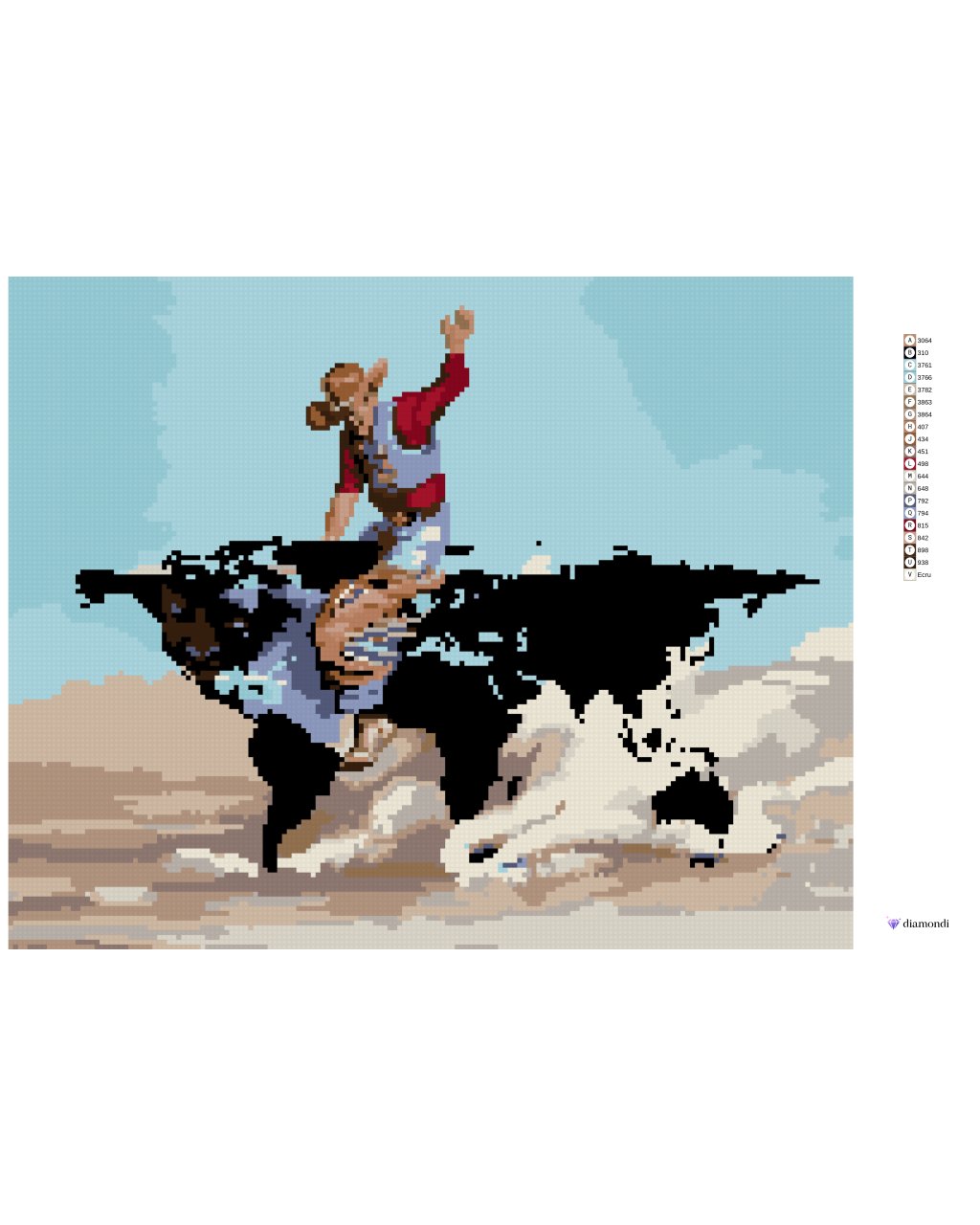 Diamantové maľovanie - KOVBOJ A BÝK AKO MAPA SVETA (D. RUSTY RUST)