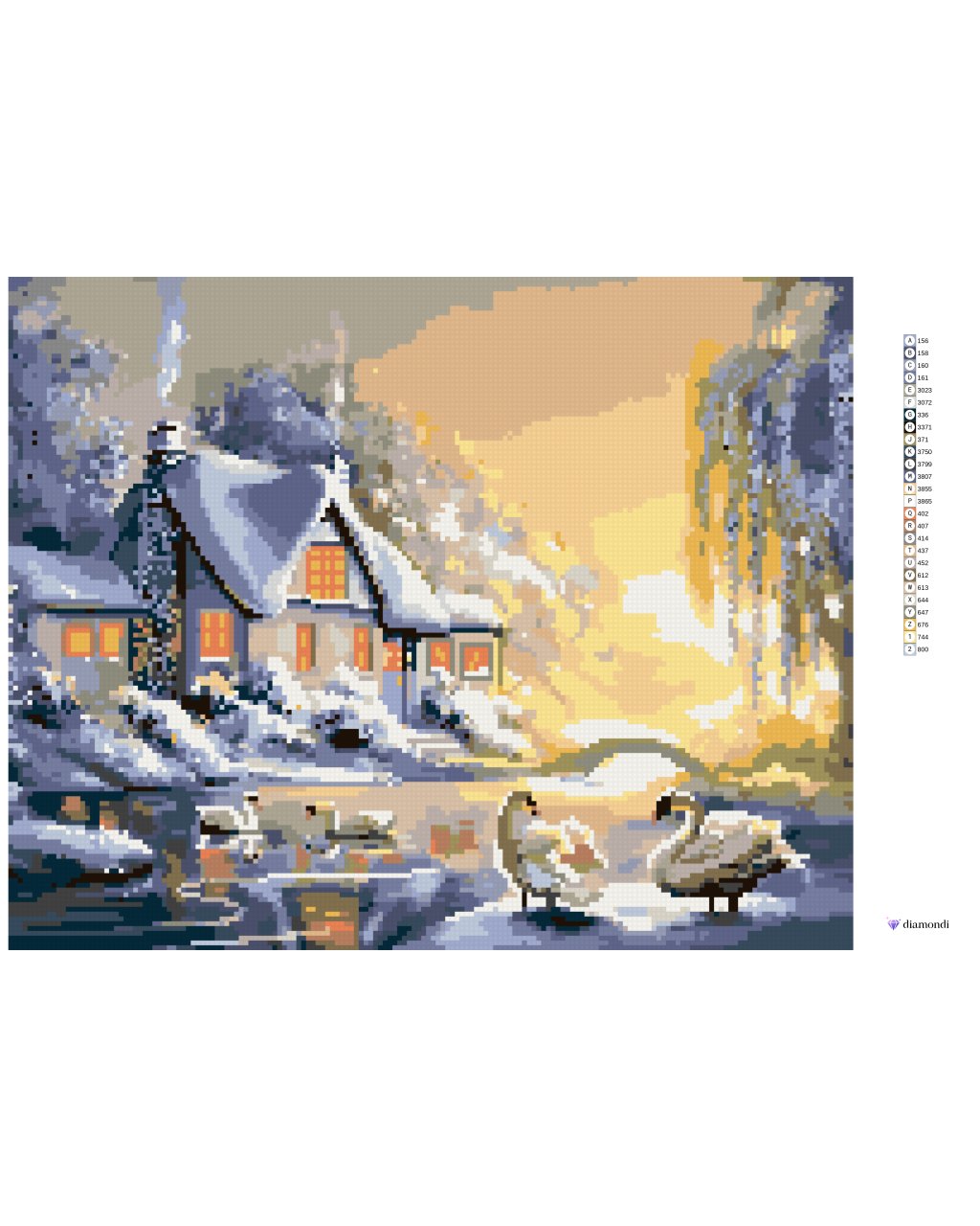 Diamantové maľovanie - LABUTE A DOM V ZIME (D. RUSTY RUST)