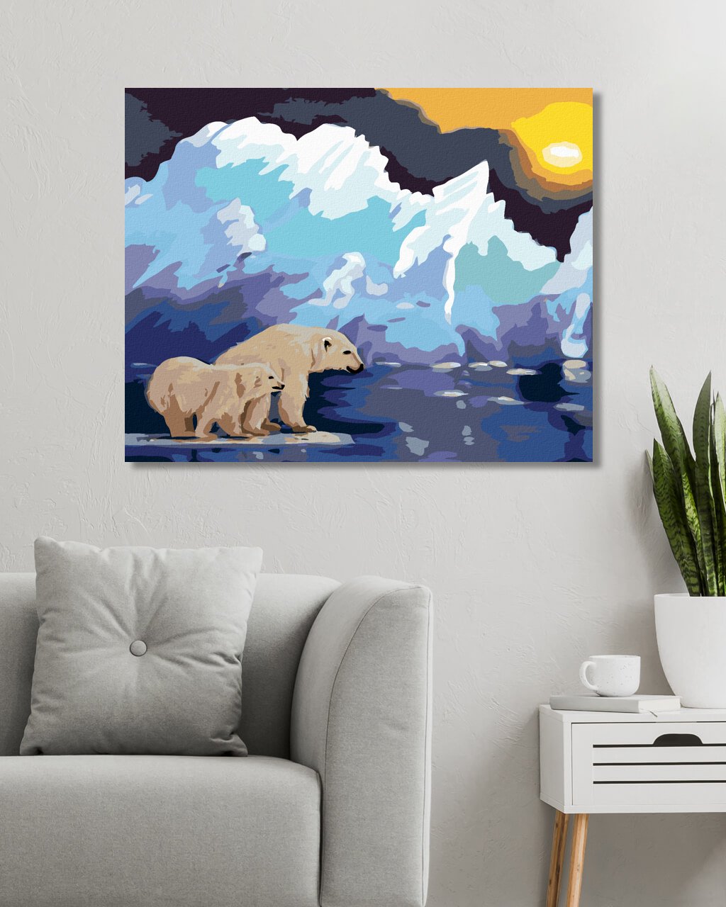 Diamantové maľovanie - ĽADOVÝ MEDVEĎ NA ĽADE A ĽADOVEC (D. RUSTY RUST)