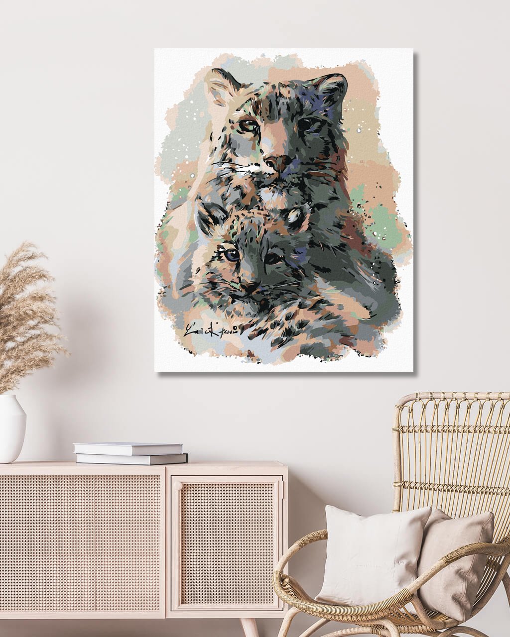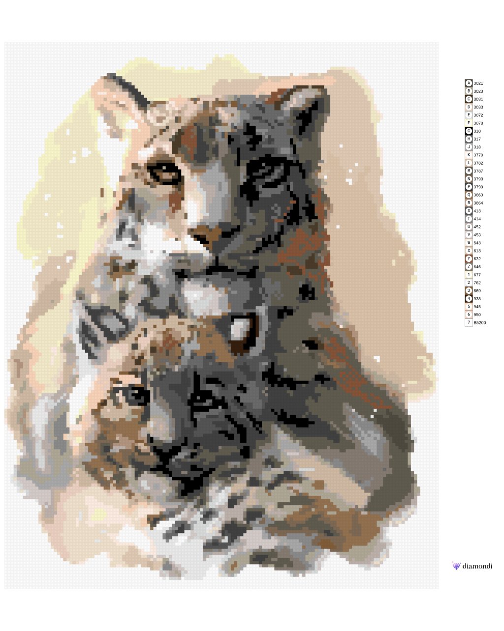 Diamantové maľovanie - LEOPARD SNĚŽNÝ S MLÁĎATKOM