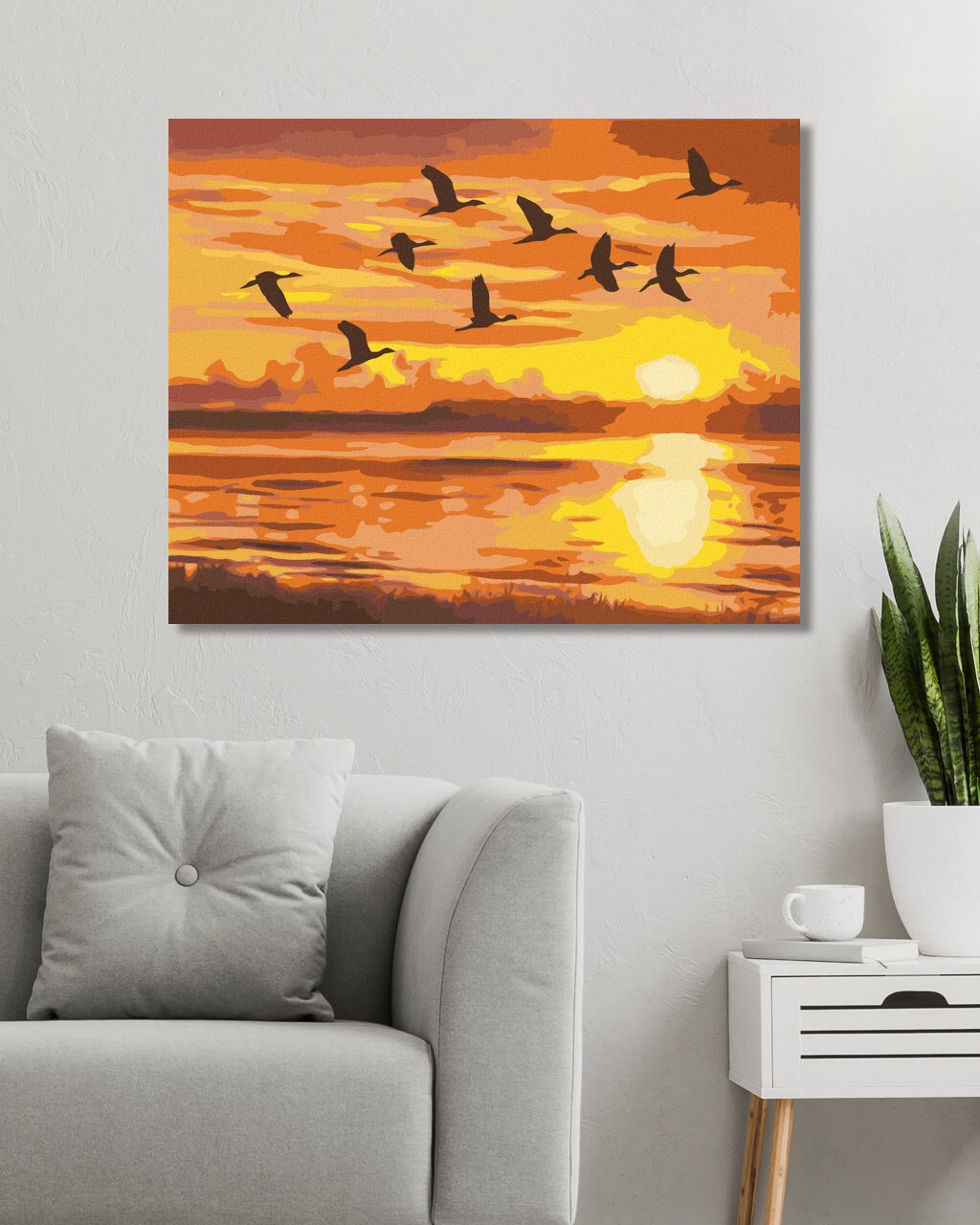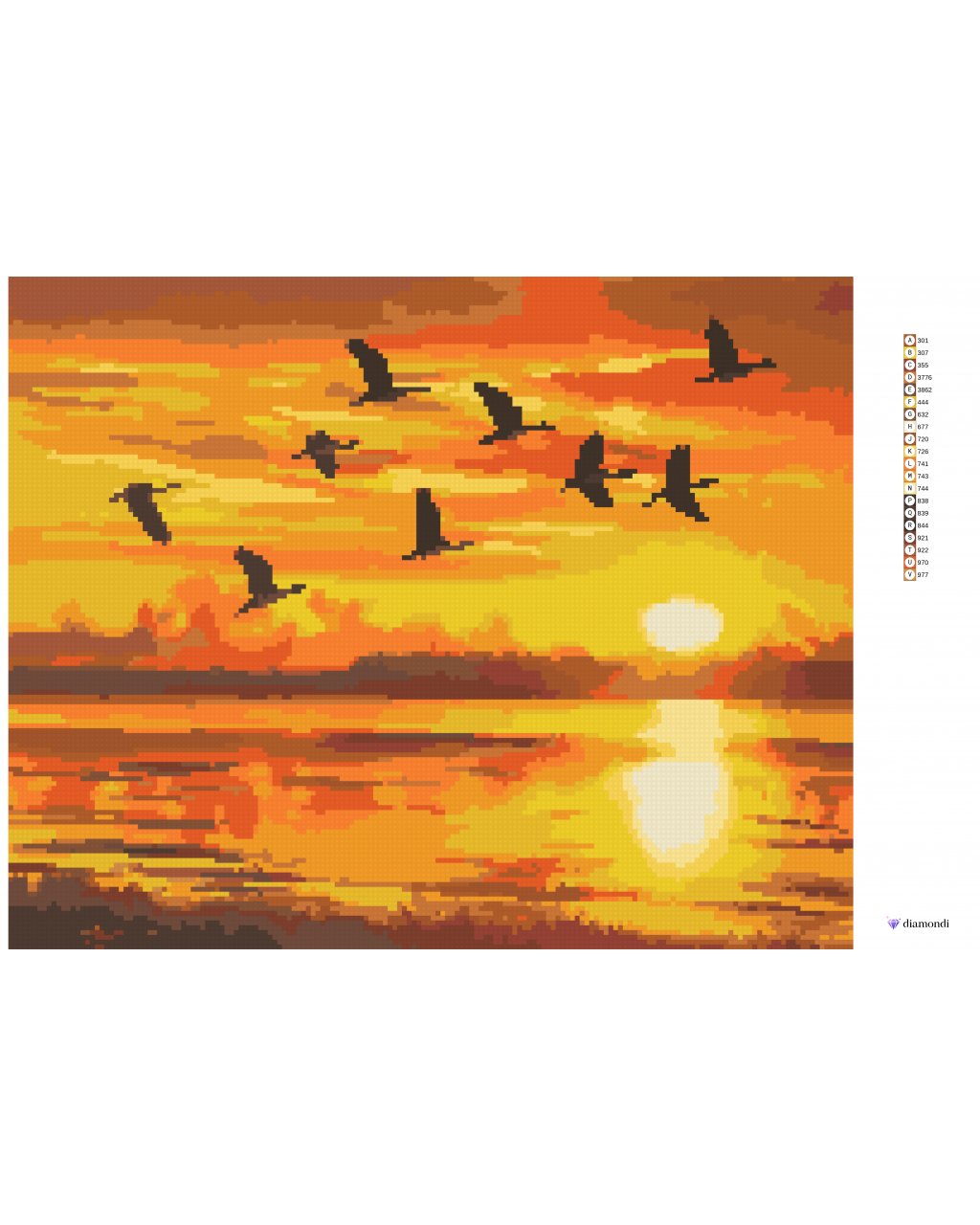 Diamantové maľovanie - LETIACE KAČKY A ZÁPAD SLNKA (D. RUSTY RUST)