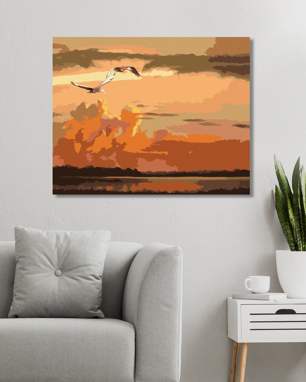 Diamantové maľovanie - LETIACE KAČKY A ZÁPAD SLNKA (D. RUSTY RUST)