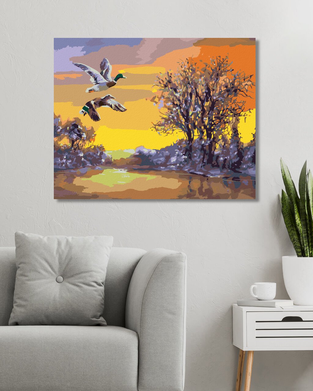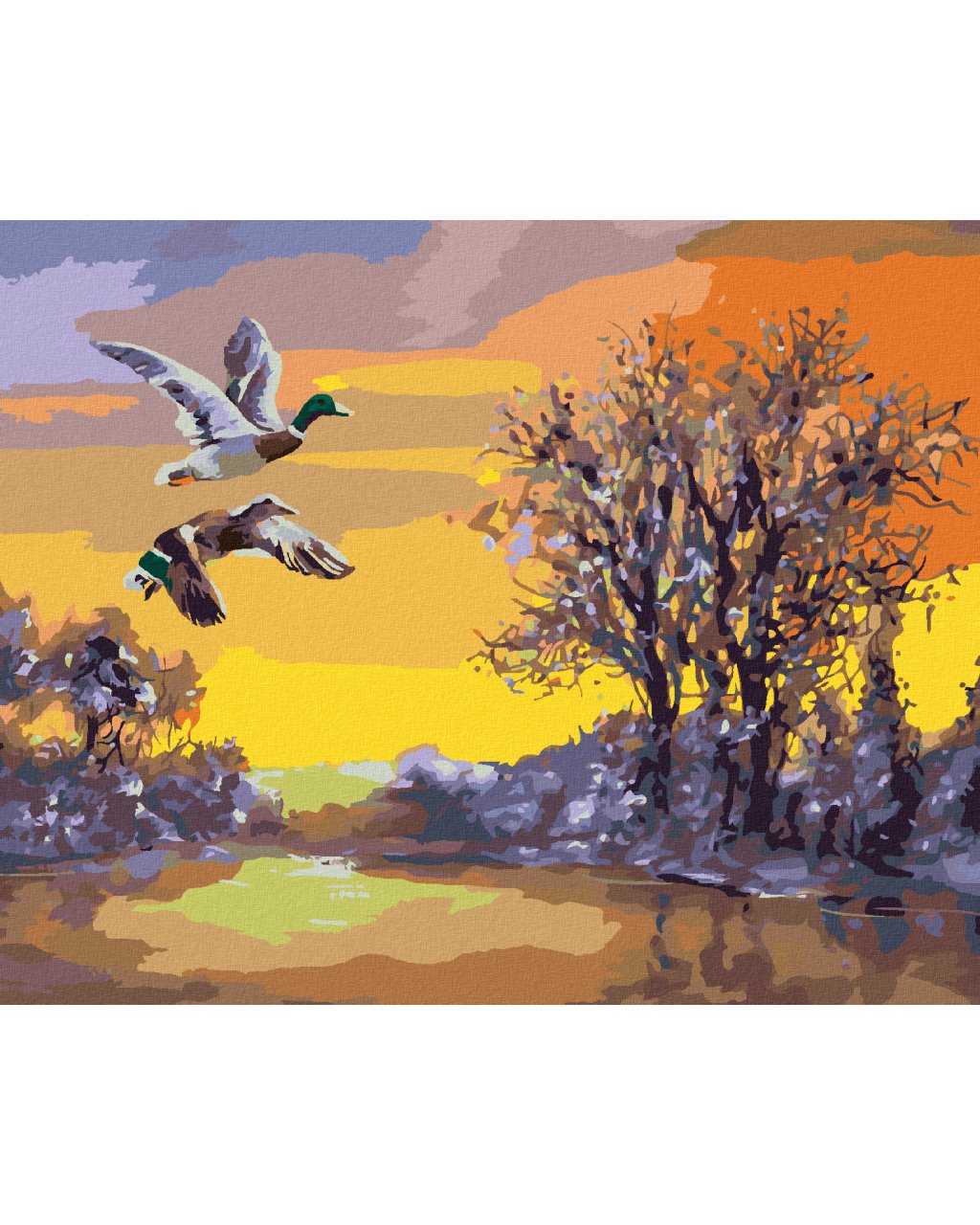Diamantové maľovanie - LETIACE KAČKY NAD RIEKOU V ZIME (D. RUSTY RUST)