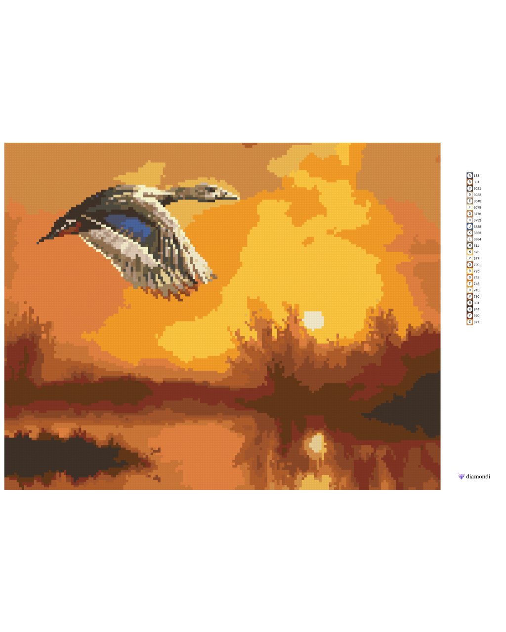 Diamantové maľovanie - LETIACIA KAČICA A ZÁPAD SLNKA (D. RUSTY RUST)