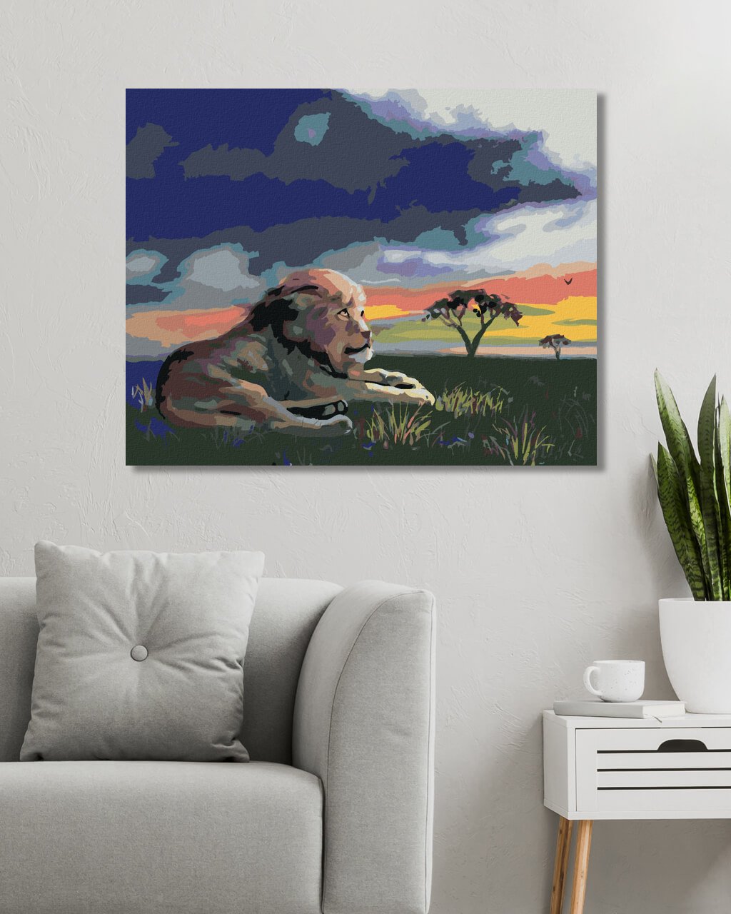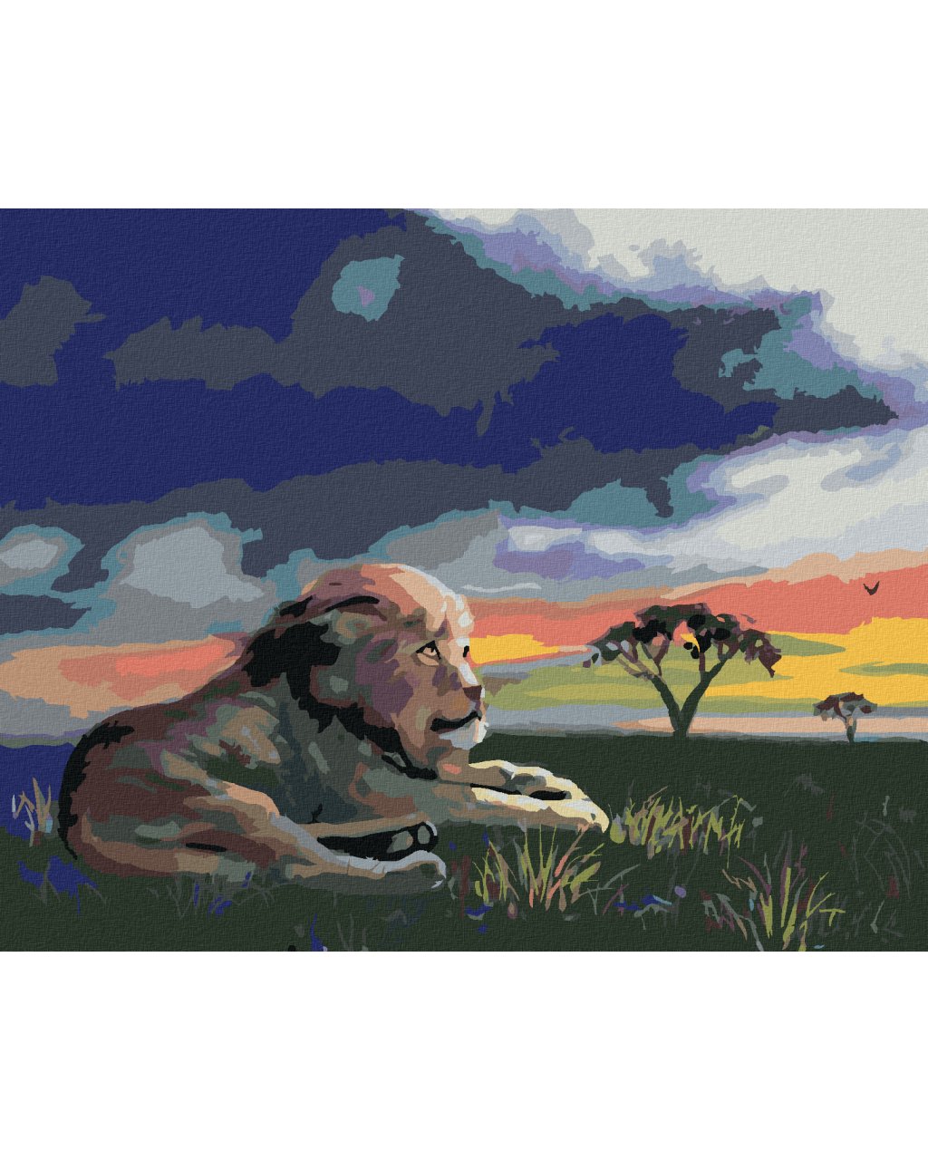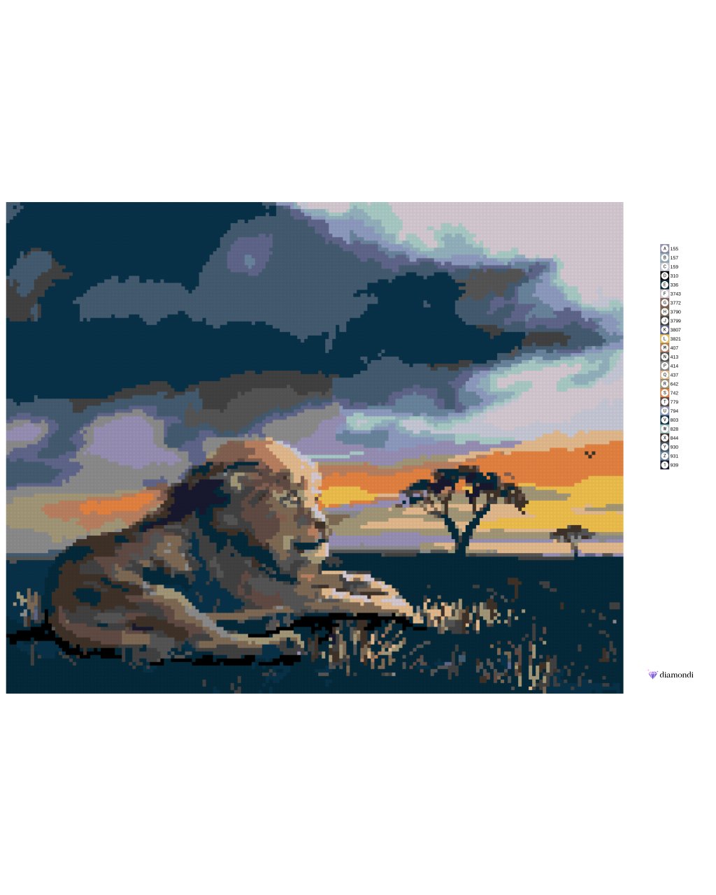 Diamantové maľovanie - LEV NA TRÁVE PRI ZÁPADE SLNKA (D. RUSTY RUST)