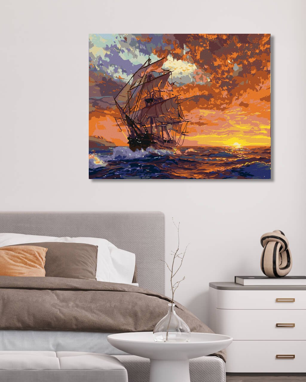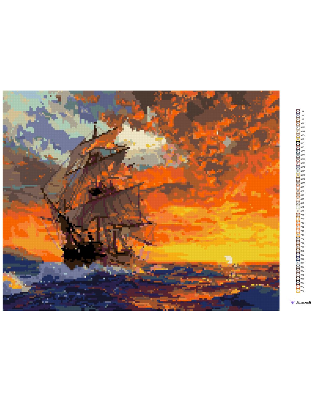 Diamantové maľovanie - LOĎ NA MORI A ZÁPAD SLNKA