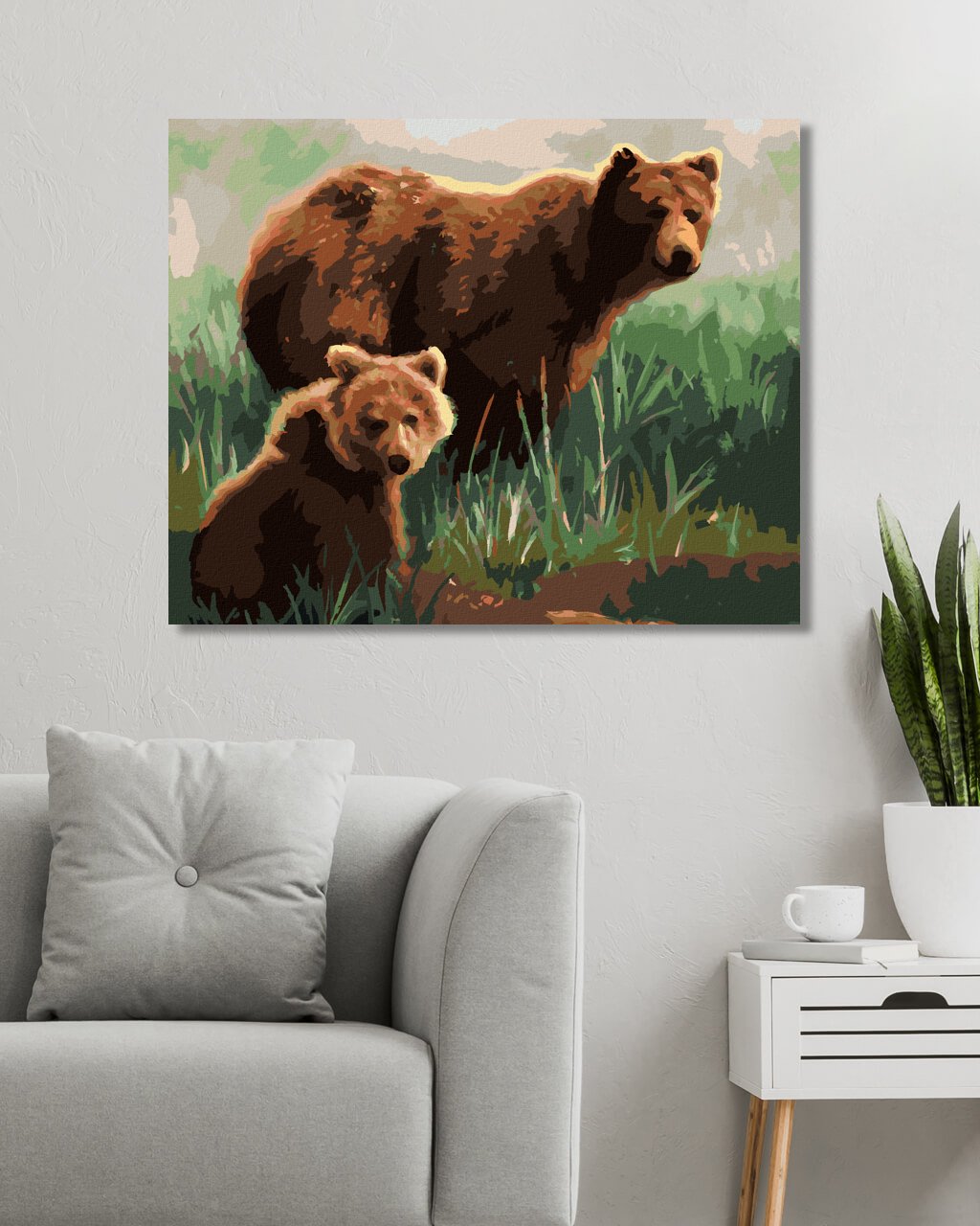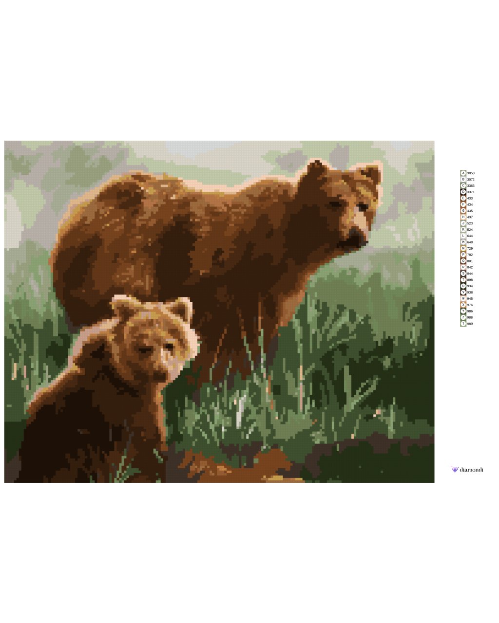 Diamantové maľovanie - MEDVEĎ S MLÁĎAŤOM V TRÁVE (D. RUSTY RUST)
