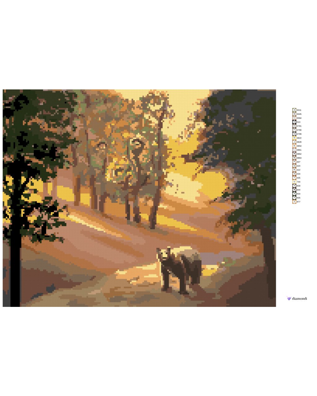Diamantové maľovanie - MEDVEĎ V LESE A ZÁPAD SLNKA (D. RUSTY RUST)