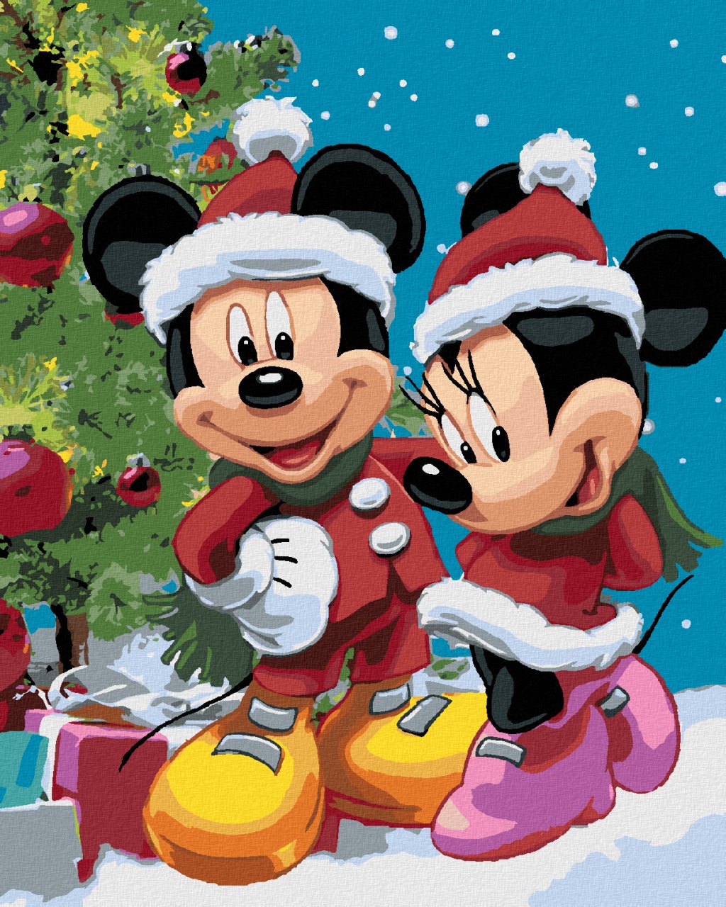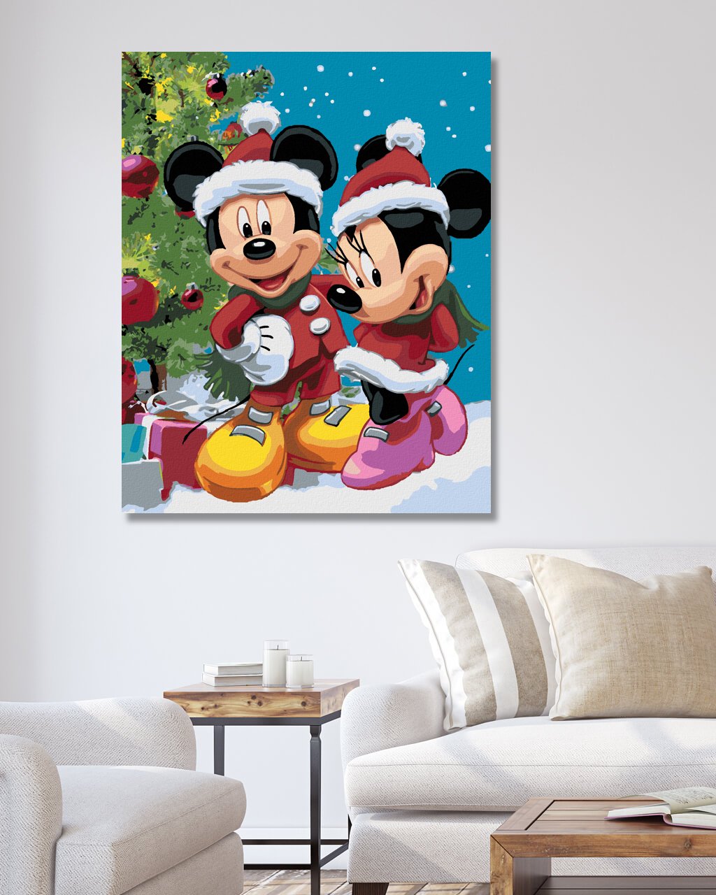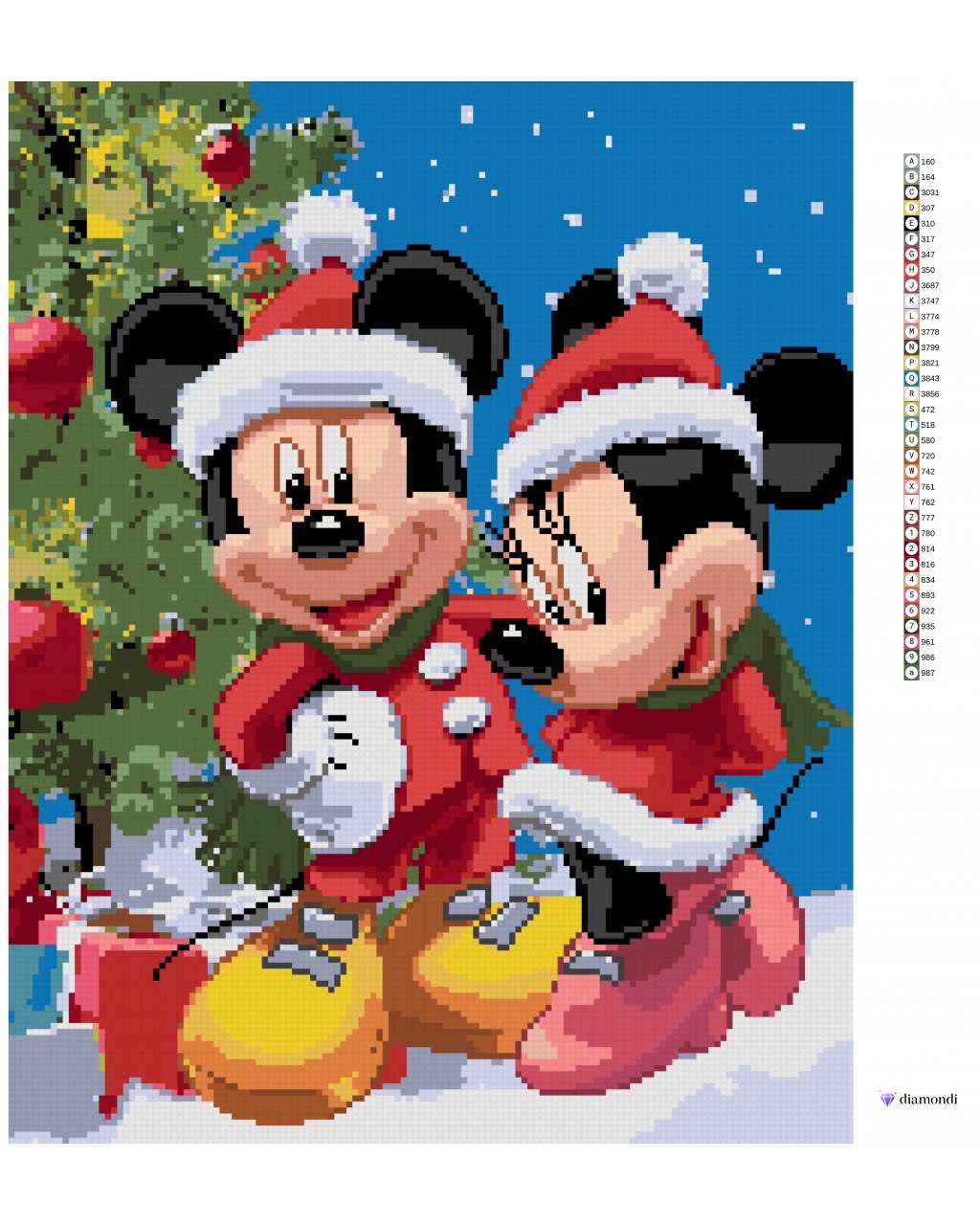 Diamantové maľovanie - MICKEY MOUSE A MINNIE VO VIANOČNOM