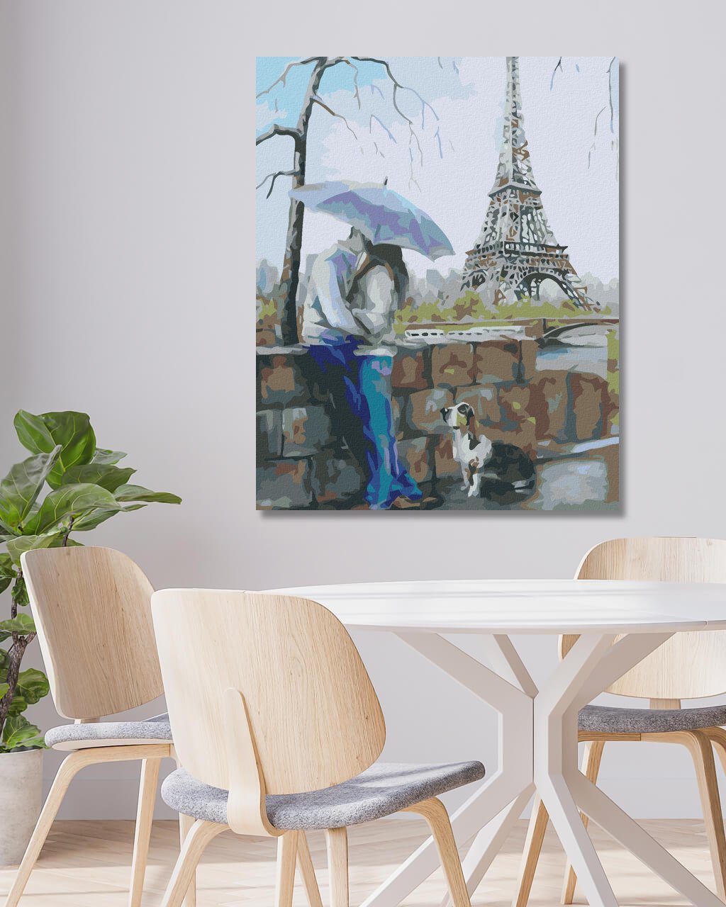 Diamantové maľovanie - MILENCI SO PSOM PRI EIFFELOVKE