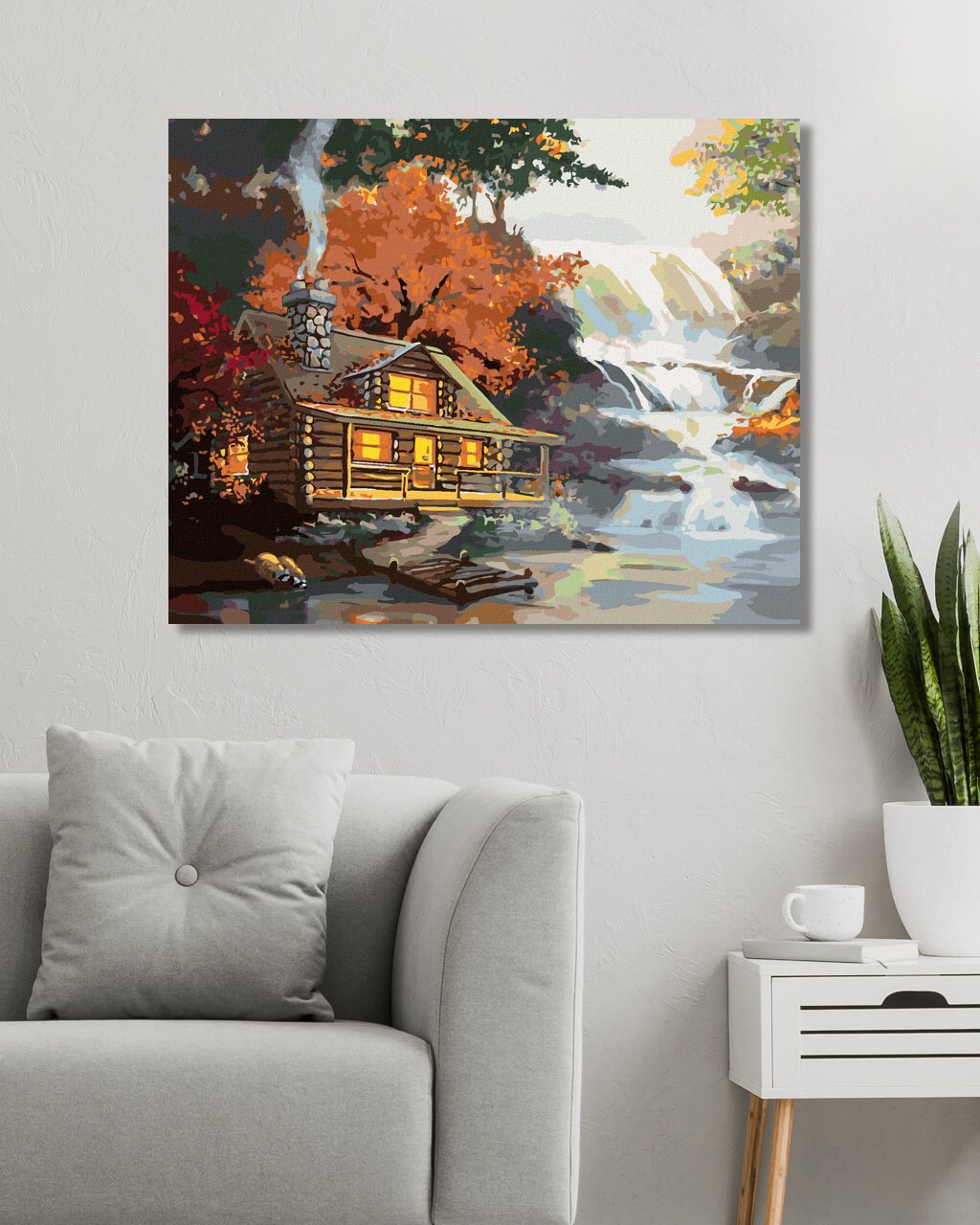 Diamantové maľovanie - MÝVAL, CHATA A VODOPÁD (D. RUSTY RUST)