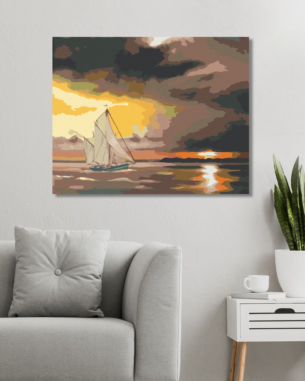 Diamantové maľovanie - PLACHETNICA A SLNKO ZA SKALAMI (D. RUSTY RUST)