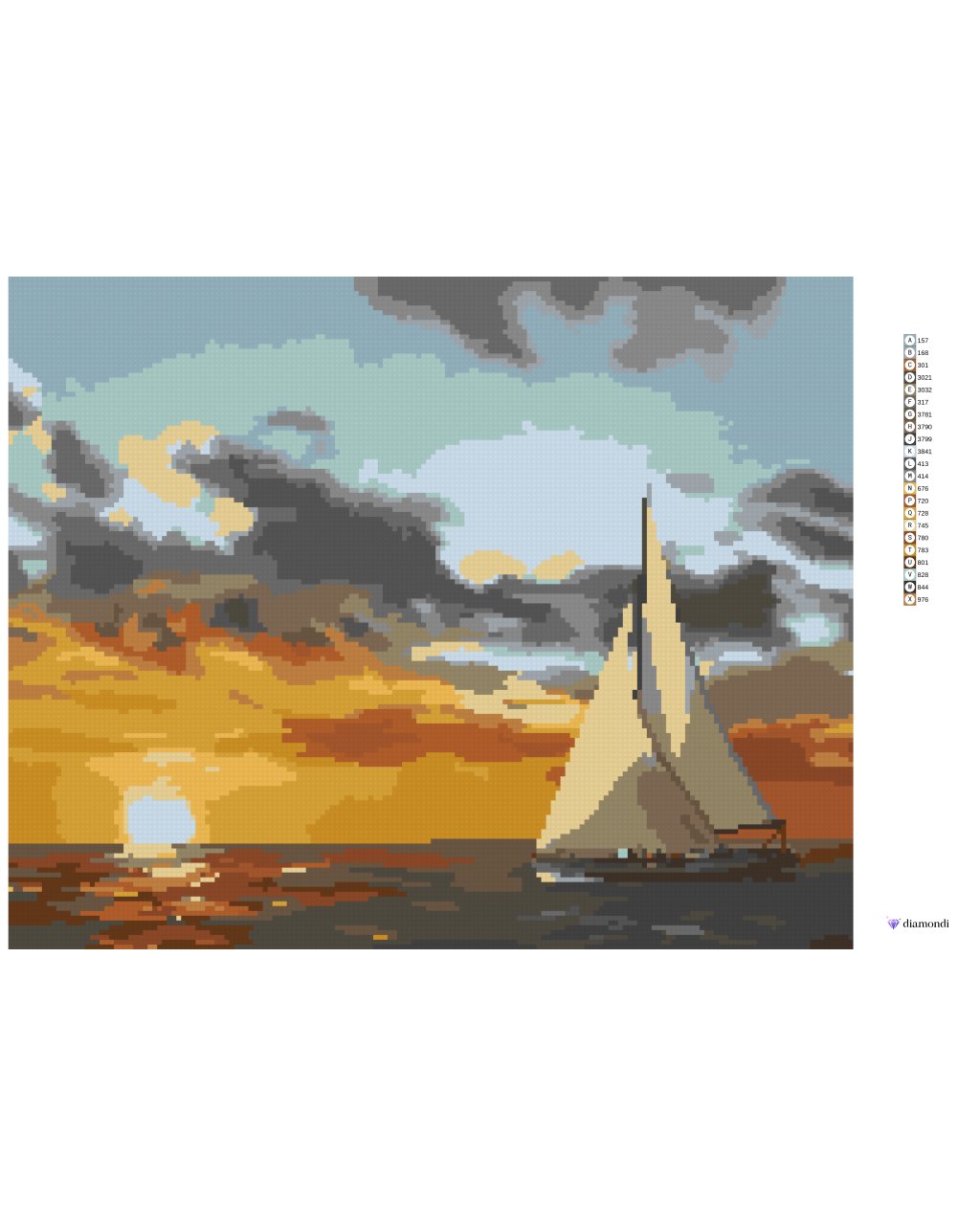 Diamantové maľovanie - PLACHETNICA A ZÁPAD SLNKA NA MORI (D. RUSTY RUST)
