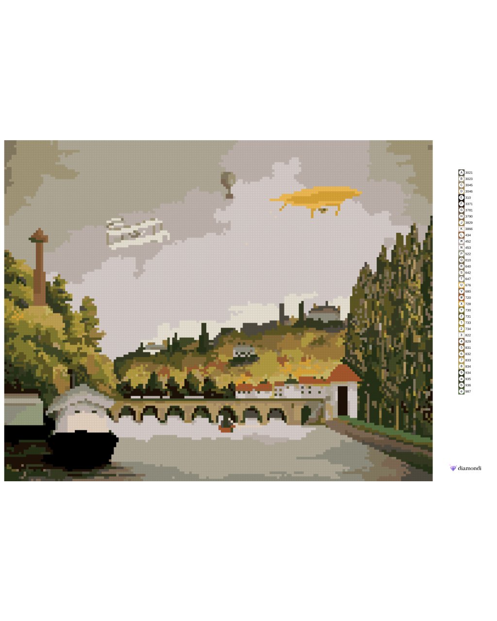 Diamantové maľovanie - POHĽAD NA MOST V SEVRES A KOPCE CLAMART (HENRI ROUSSEAU)