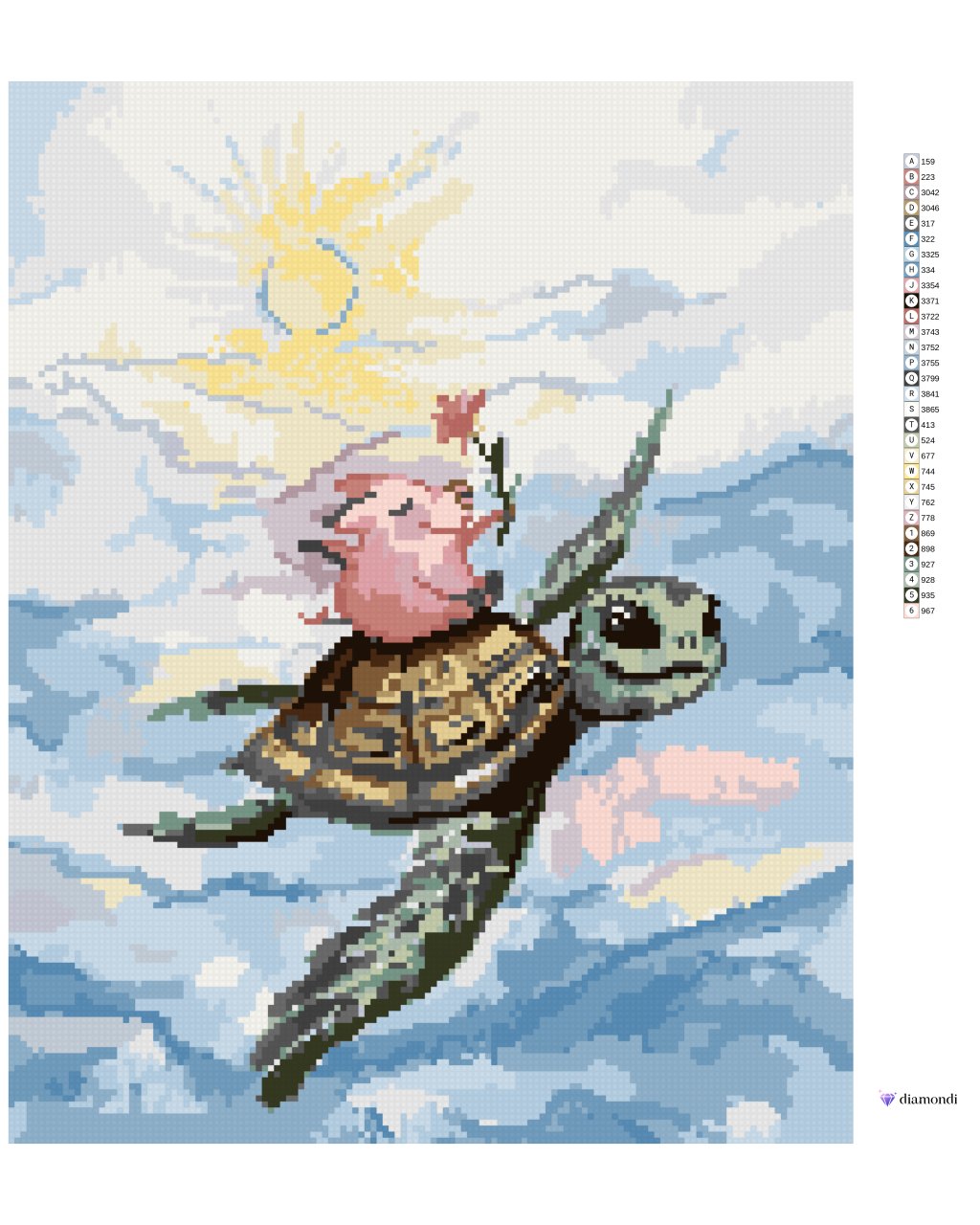 Diamantové maľovanie - PRASA LETIACE NA KORYTNAČKE