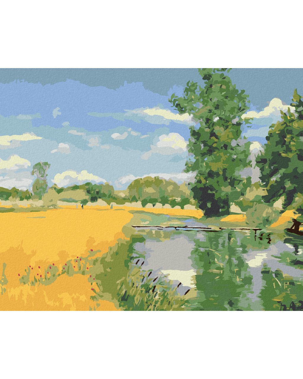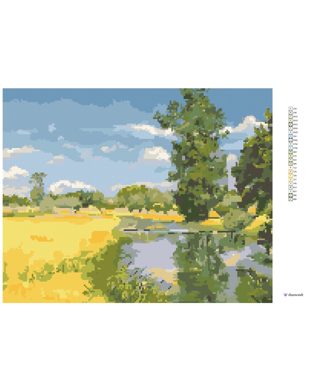 Diamantové maľovanie - RIEKA PRETEKAJÚCA KRAJINOU V DOBE ZBERU (H. A. BRENDEKILDE)