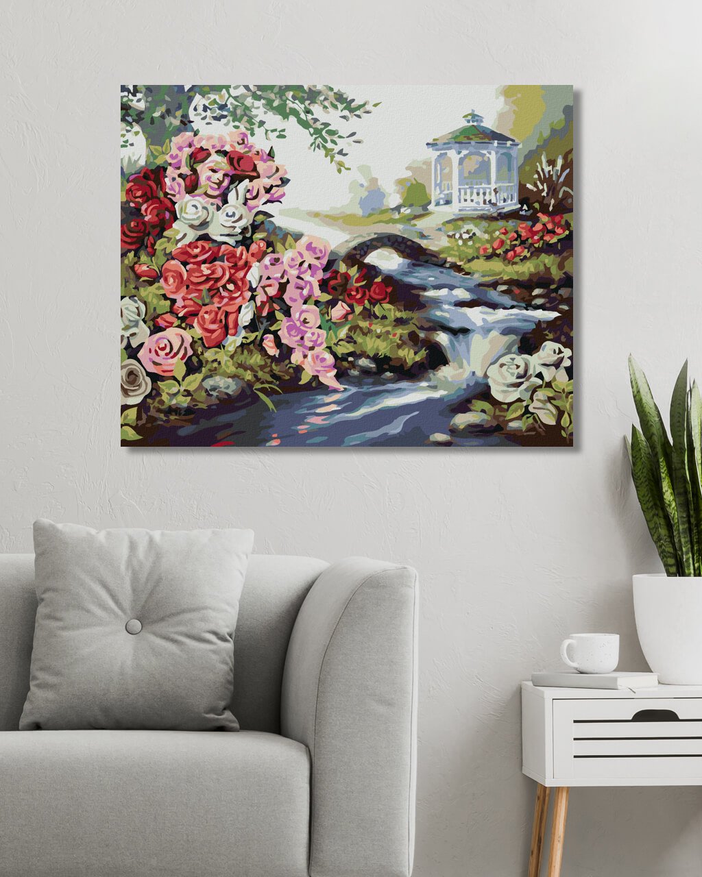 Diamantové maľovanie - RUŽA PRI POTÔČIKU A ALTÁNKU (D. RUSTY RUST)