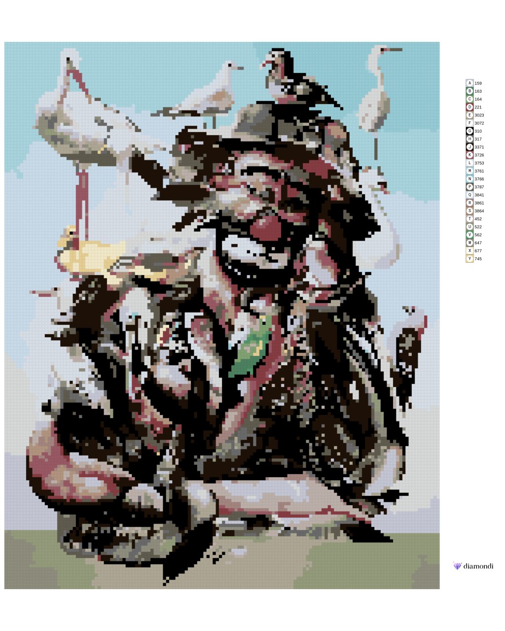 Diamantové maľovanie - SMUTNÝ KLAUN POSKLADANÝ ZO ZVIERAT (D. RUSTY RUST)