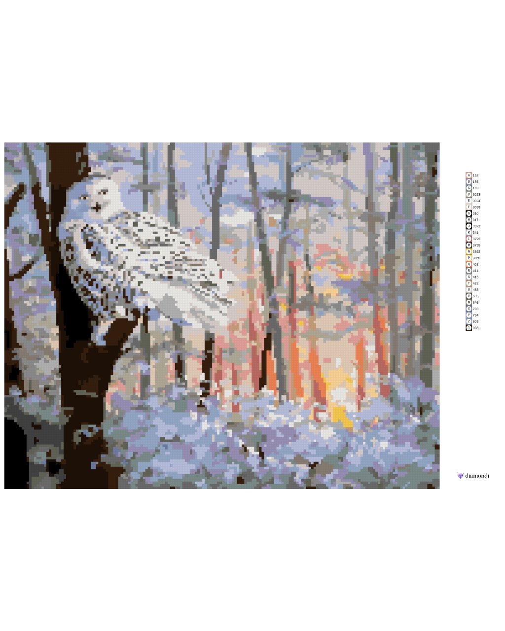 Diamantové maľovanie - SNEŽNÁ SOVA V LESE (D. RUSTY RUST)