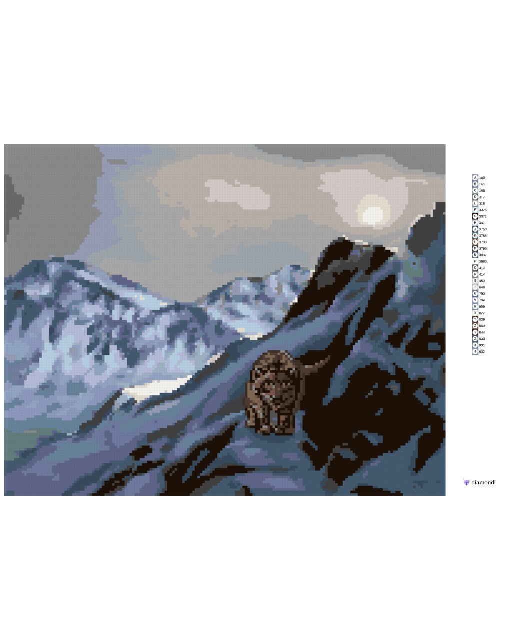 Diamantové maľovanie - SNEŽNÝ LEOPARD NA SKALE (D. RUSTY RUST)