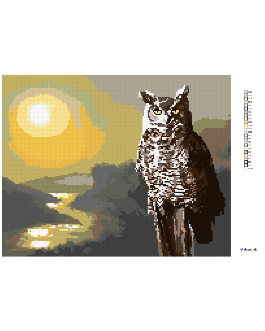 Diamantové maľovanie - SOVA, RIEKA A ZÁPAD SLNKA (D. RUSTY RUST)