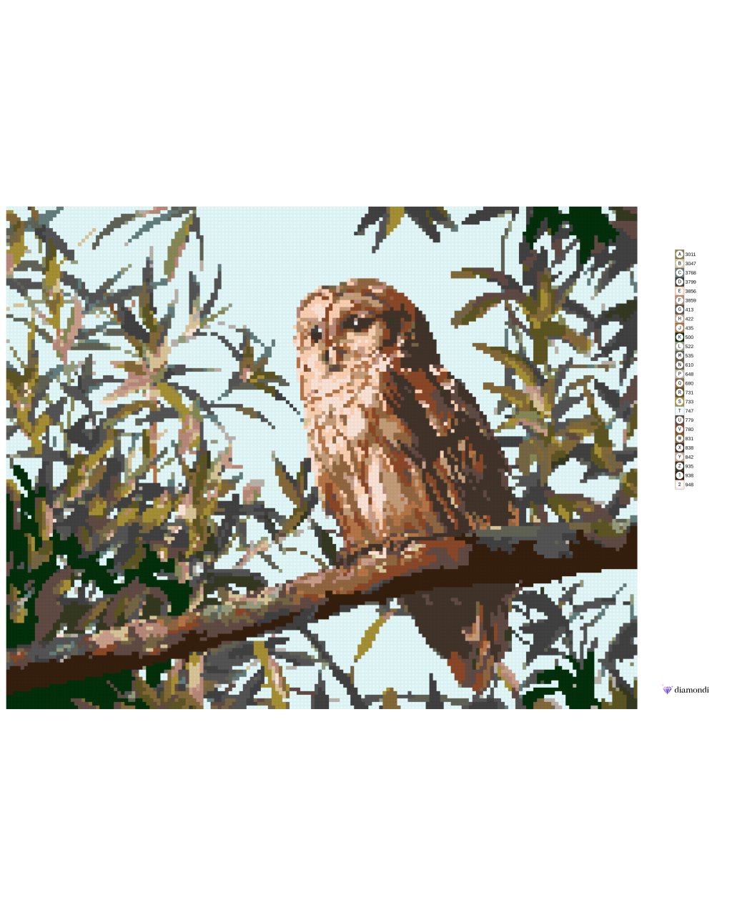 Diamantové maľovanie - SOVA NA KONÁRI A LISTY (D. RUSTY RUST)