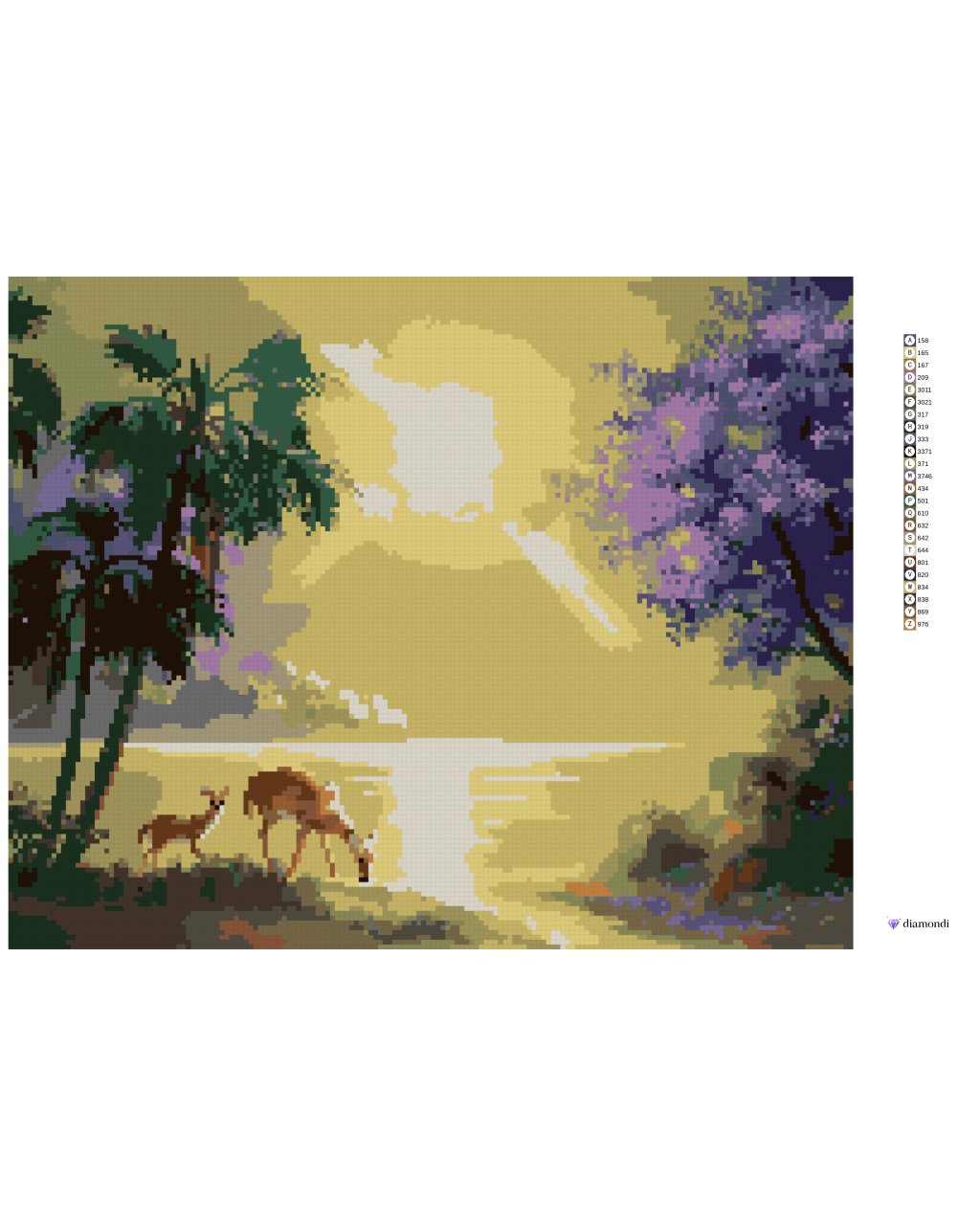 Diamantové maľovanie - SRNA SO SRNCOM, PALMY A SLNKO (D. RUSTY RUST)