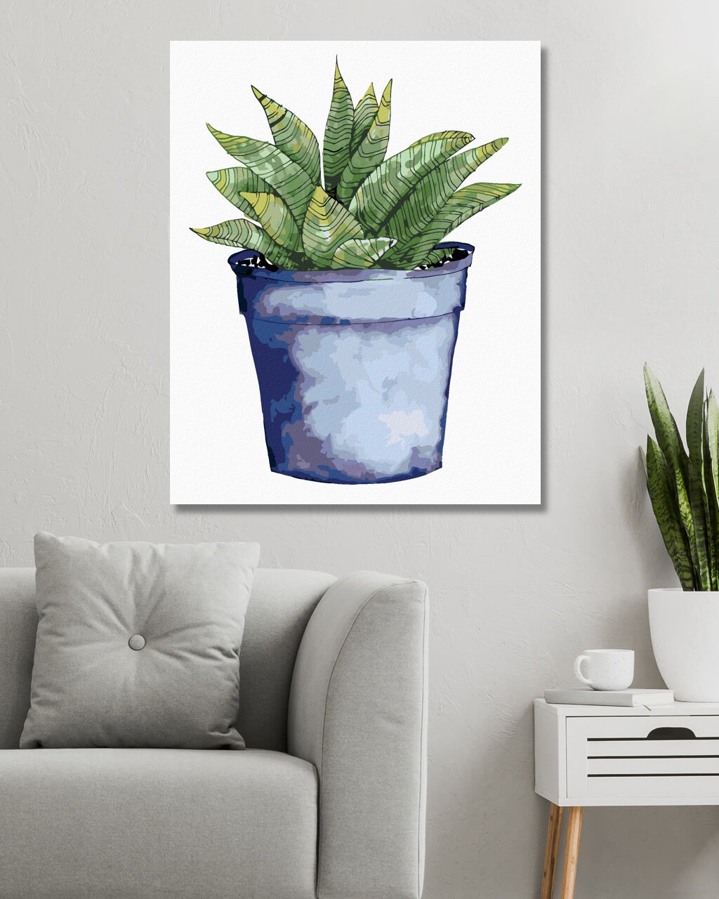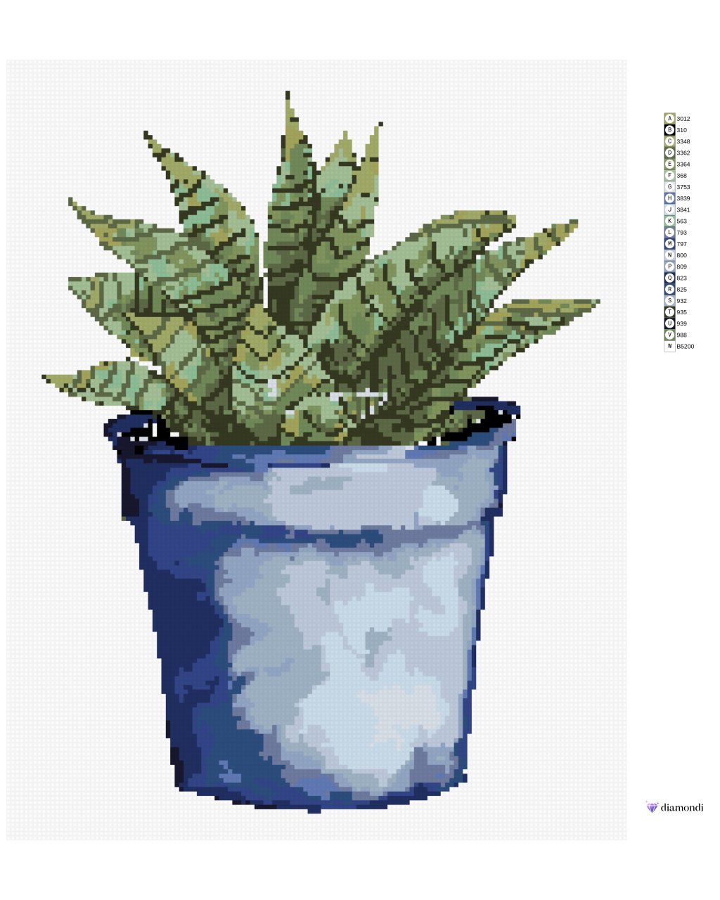 Diamantové maľovanie - SUKULENT V MODROM KVETINÁČI (ALEXANDRIA GILBERT)