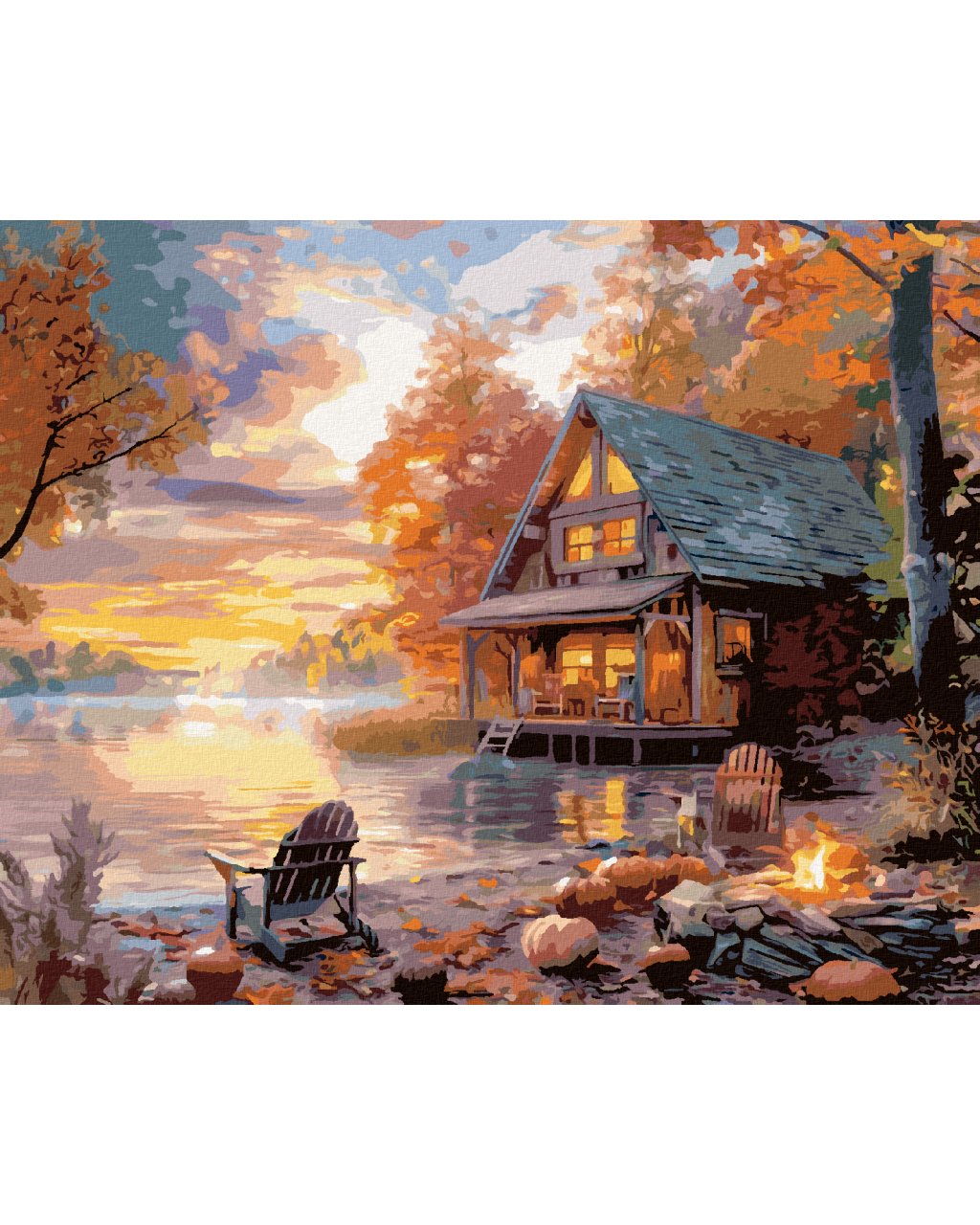 Diamantové maľovanie - TEKVICA, TÁBORÁK, KÁNOE PRI JAZERE A ZÁPAD SLNKA