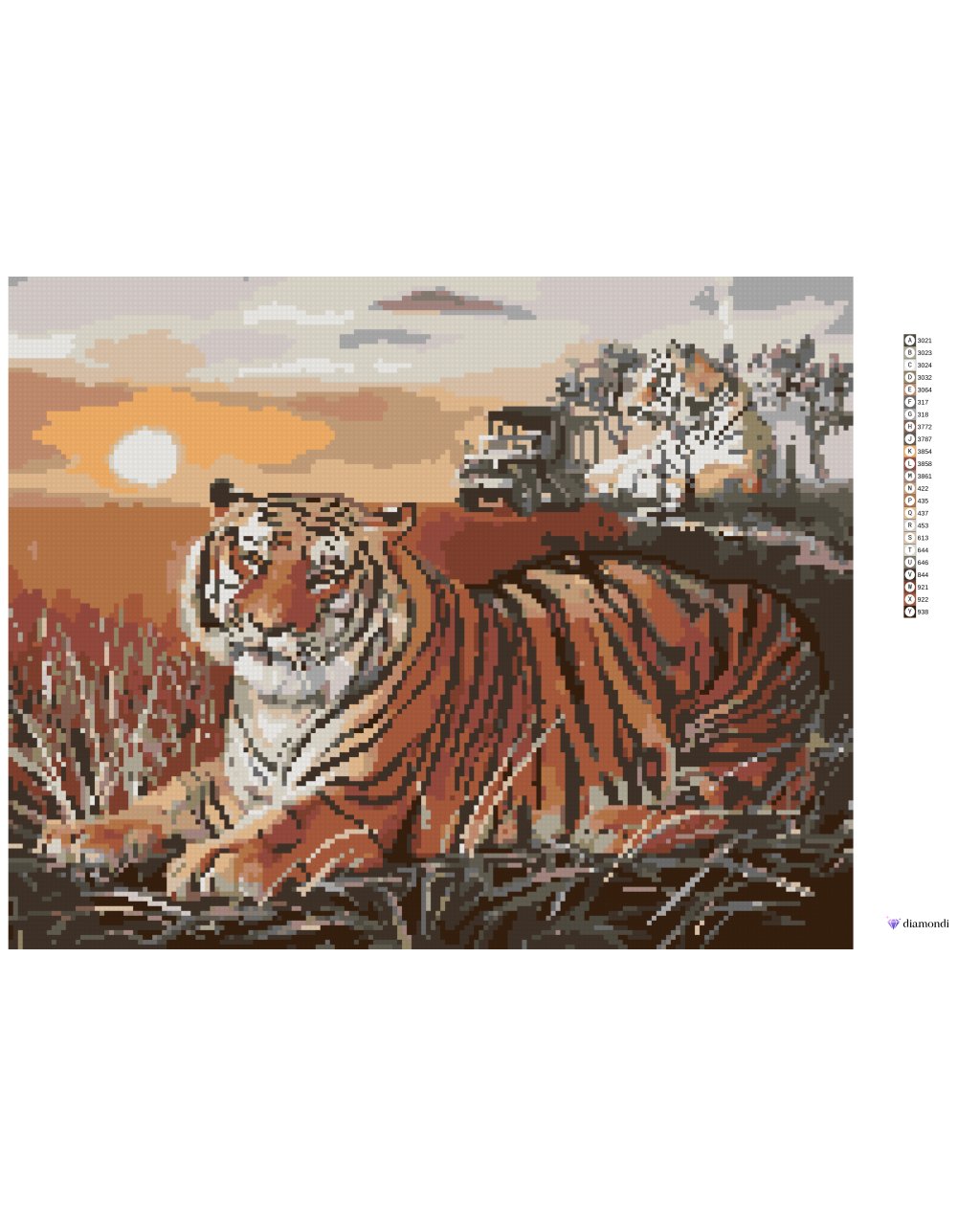 Diamantové maľovanie - TIGER A ZÁPAD SLNKA NA SAVANE (D. RUSTY RUST)