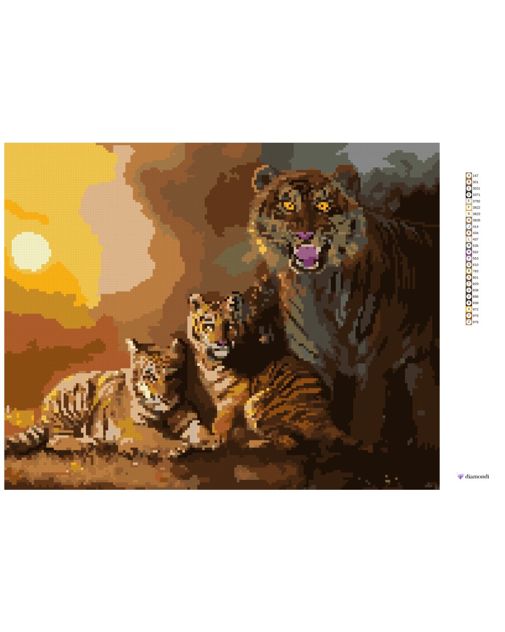 Diamantové maľovanie - TIGER S MLÁĎATAMI A ZÁPAD SLNKA (D. RUSTY RUST)