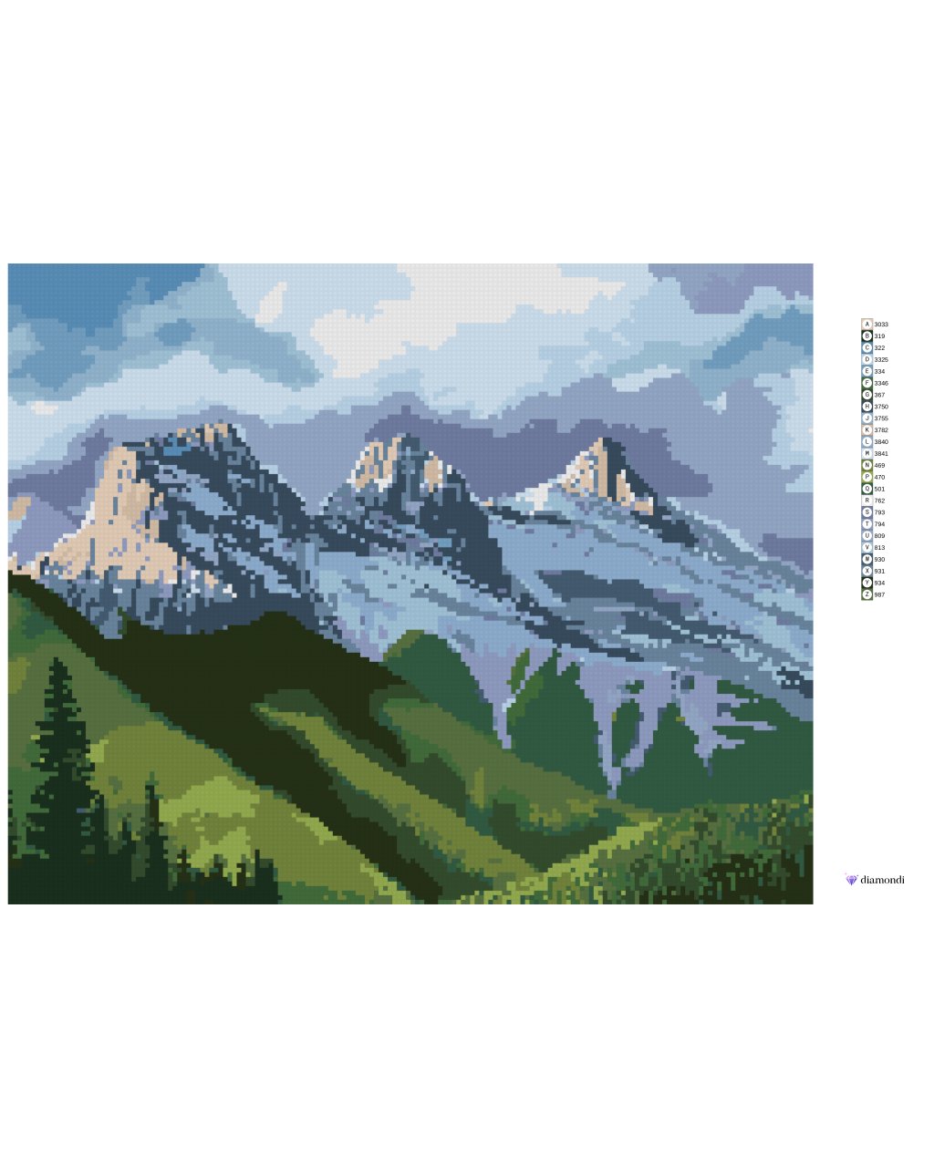 Diamantové maľovanie - TRI HORY A LES (ROBERT JOHNSON)
